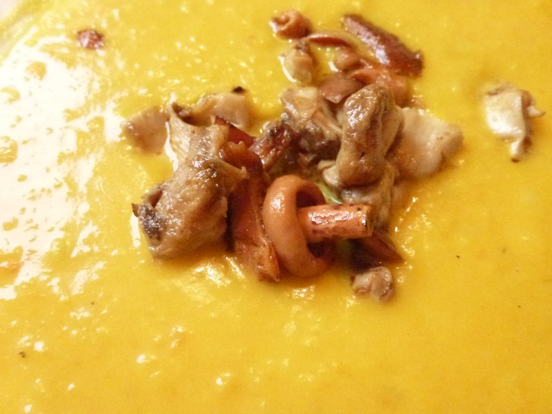 19. Am Abend gab es leckere selbstgekochte Kürbissuppe mit geschmorten Pilzen aus dem Wald