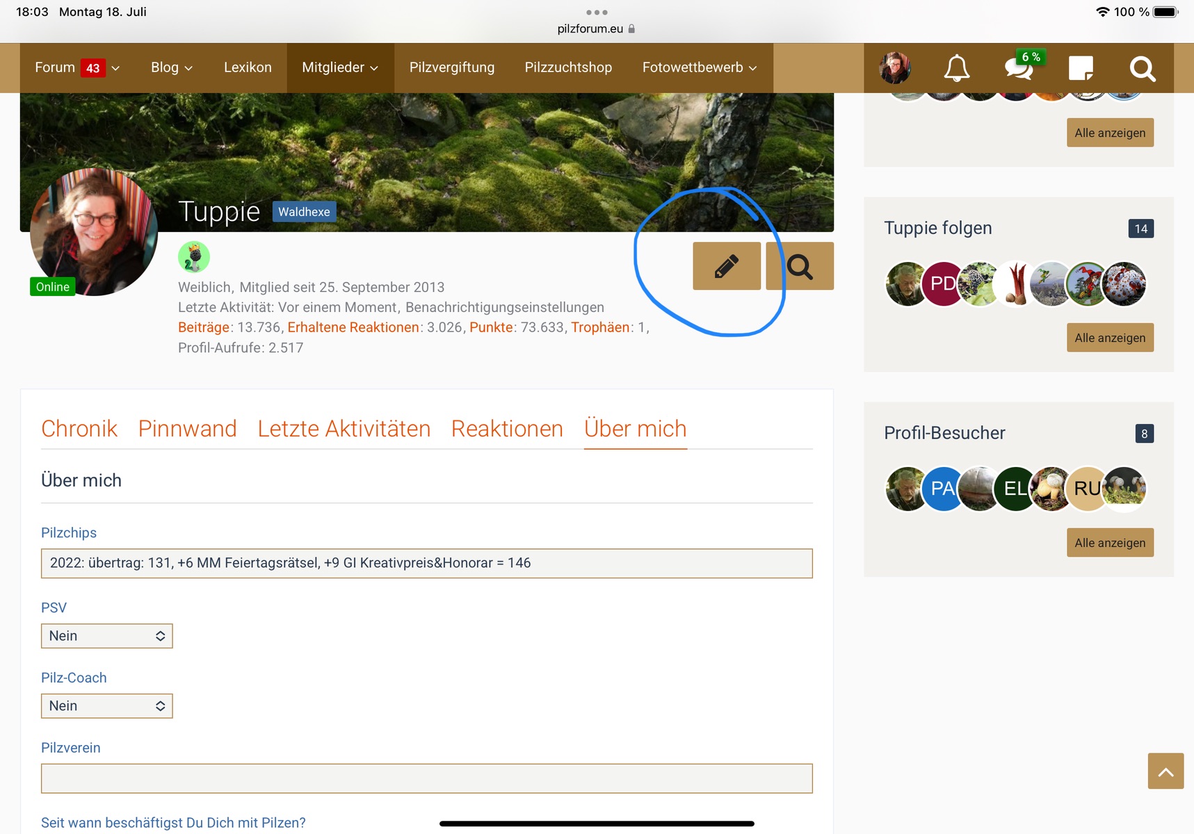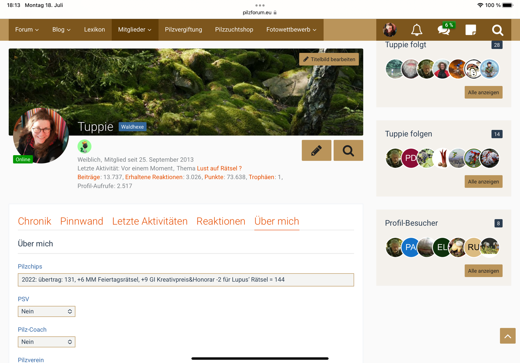 Dann mal herzlich willkommen im Forum der Pilzverrückten.