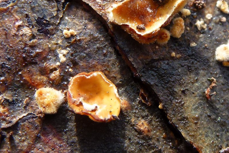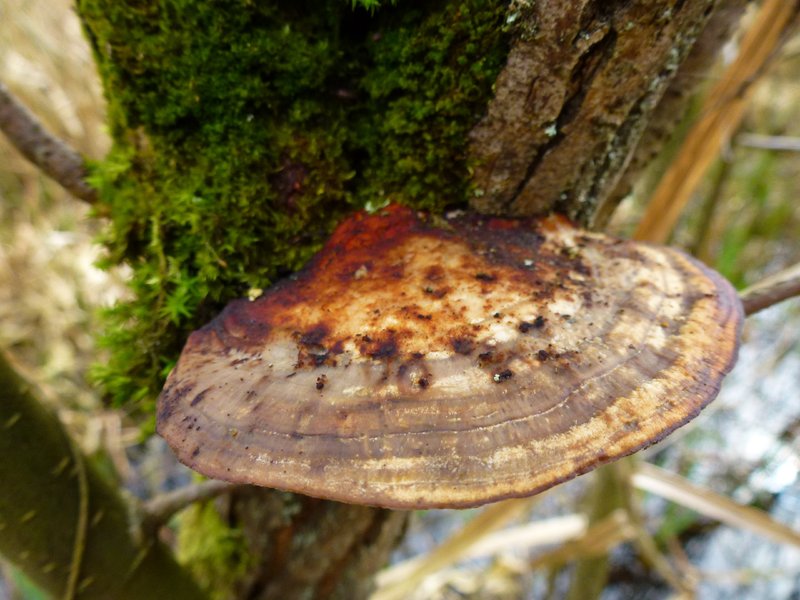 13. Ich werde noch zum Stöckchendreher;), dieser wuchs an einem toten Erlenstamm, im Matsch liegend, edit: Stereum hirsutum (Striegeliger Schichtpilz)