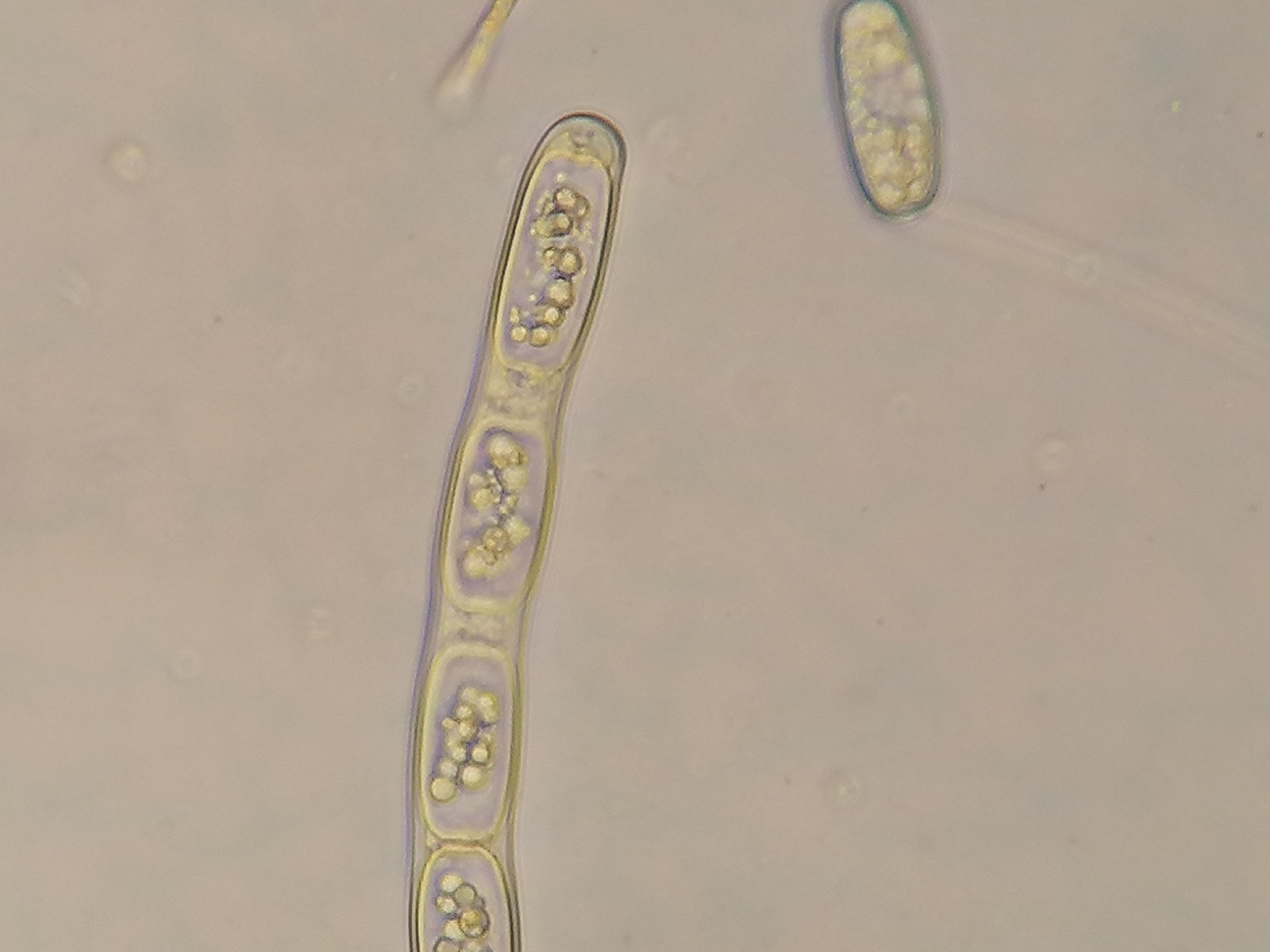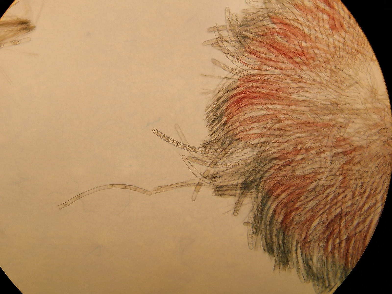 Hier sieht man schön die Farbpigmente in den Paraphysen