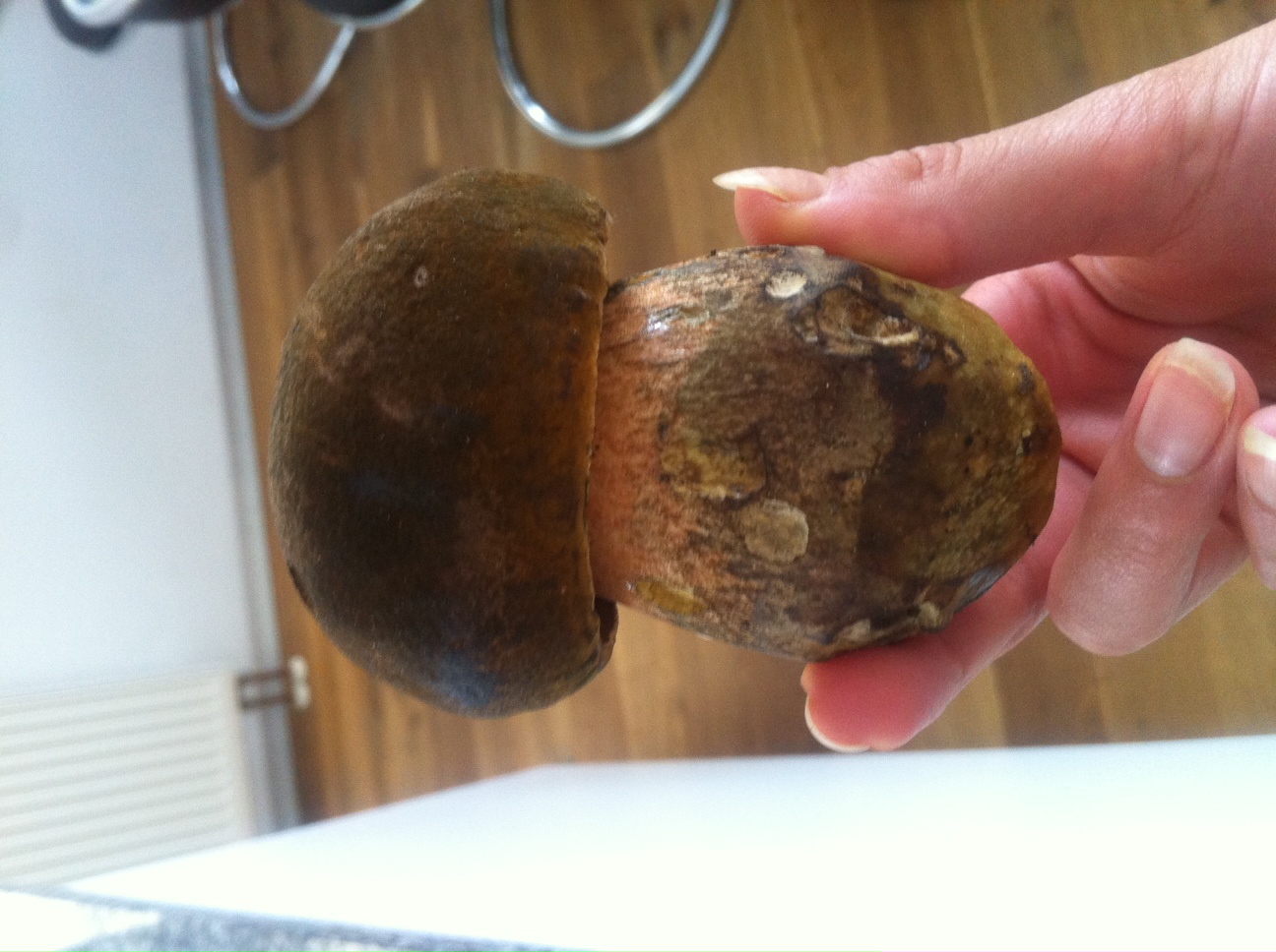 Heute im Schwarzwald gefunden. Der Stiel ist rot, wie beim Rotfußröhling, hat aber eine weiße Vernetzung. Der Hut oben ist grau-weiß, von innen - gelblich. Sonst ist er dem Satansröhling ähnlich.