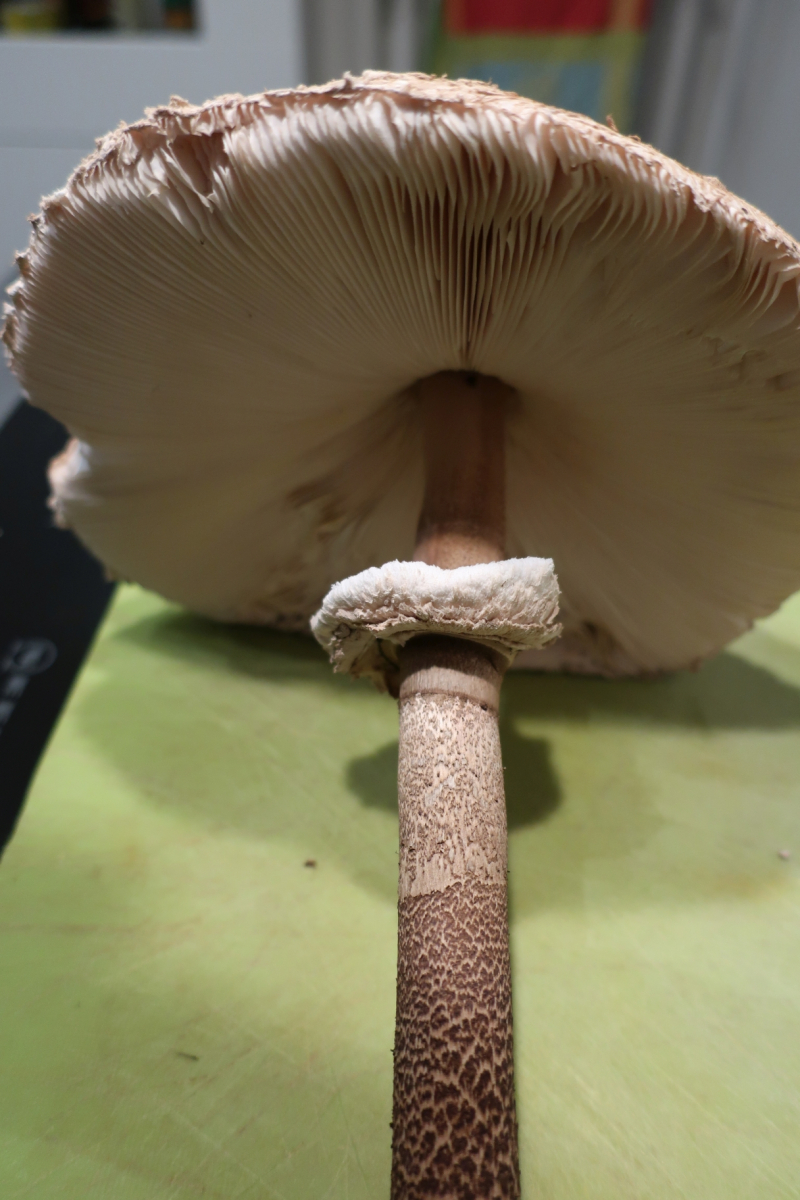 Dies sind die ersten, die ich mitgenommen habe. Ich habe schon einiges über Parasole gelesen und gerade die Geschichten vom Garten Riesenschirmling haben mich etwas kirre gemacht. (Ich weiß, es war nicht auf dem Kompost) Würde einfach gerne ganz sicher sein, bevor ich die in die Pfanne haue.