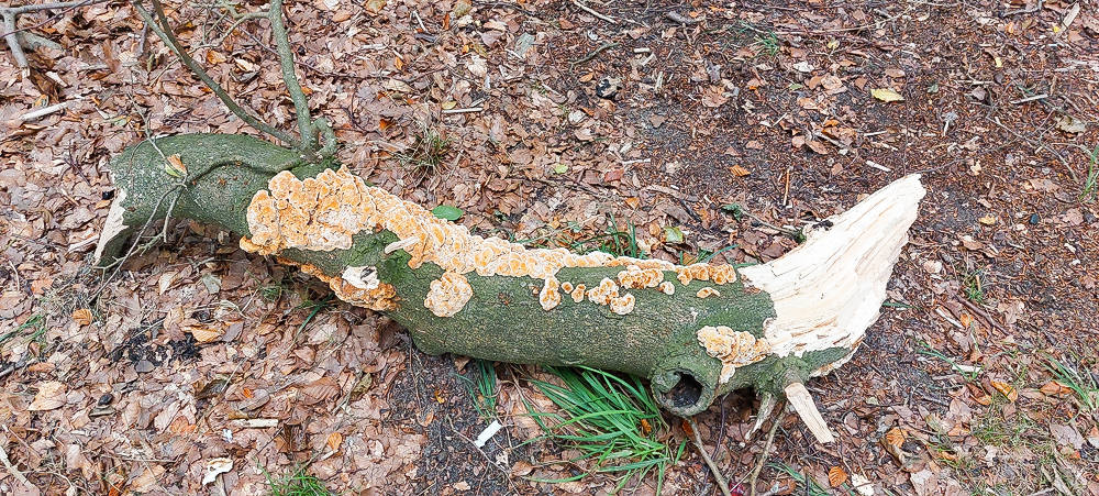 Also Massivholz am Fundort war dort nicht nur eben Totholz in Form von Ästen und auch Wurzeln von Bäumen um den Pilz drumherum. Es waren nur Laubbäume wie Eiche, Hainbuche, Buche und auch Erlen an einem See der auf kalkreichen Boden stockt mit wohl oberflächlich versauerten Stellen.