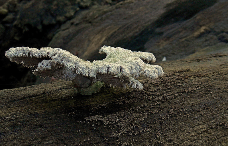 Die Kleinen wuchsen auf einem liegendem Baumstamm,tief unten, fast auf der Erde.