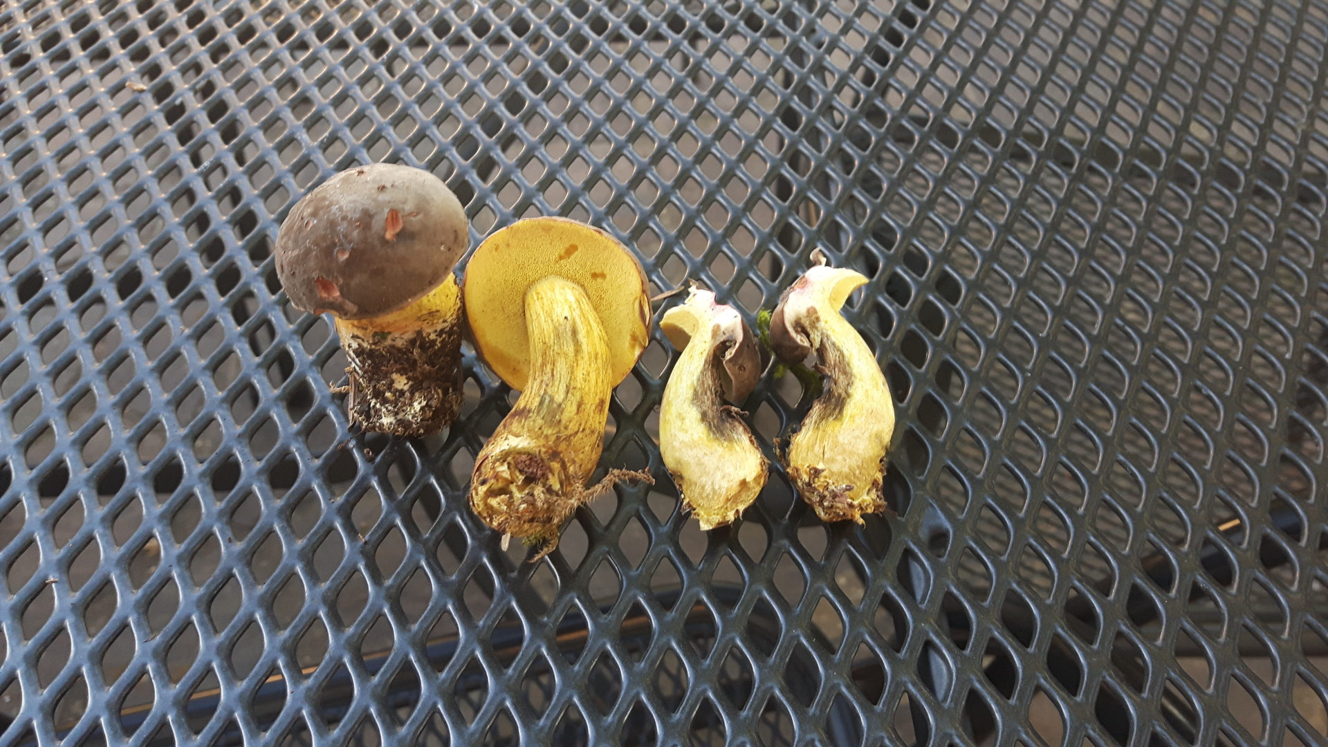 Mischwald ist natürlich dann das Todesurteil für den Bestimmungsversuch. Kurz zusammengefasst: Lange wurde beides für eine Art gehalten. Am Ende wurde die Art aufgespalten. Man spricht davon, dass die B. subappendiculatus (die Nadelwald-Art) niemals blau verfärbt, insgesamt eine dunklere Hutfärbung hat und auf KOH anders reagiert. Zwei der Merkmale, nämlich die Hutfärbung und die KOH-Reaktion, können die Experten der Großpilze Baden-Württembergs bei ihren Untersuchungen zu der Art nicht feststellen. Das mit der Verfärbung scheint meist zuzutreffen. Zudem soll die Nadelwald-Art helleres Fleisch haben, aber das ist leider eine relative Angabe. Es bleiben also nur die Mykorrhiza-Partner zur Unterscheidung: Rotbuche, vor Eiche, vor Hainbuche und Edelkastanie (Angaben aus GPBW - Band 1, gemischt mit der Angabe bei Wikipedia) für den Anhängselröhrling (B. appendiculatus) und Fichte weit vor Kiefer für den Nadelwald-Anhängselröhrling.