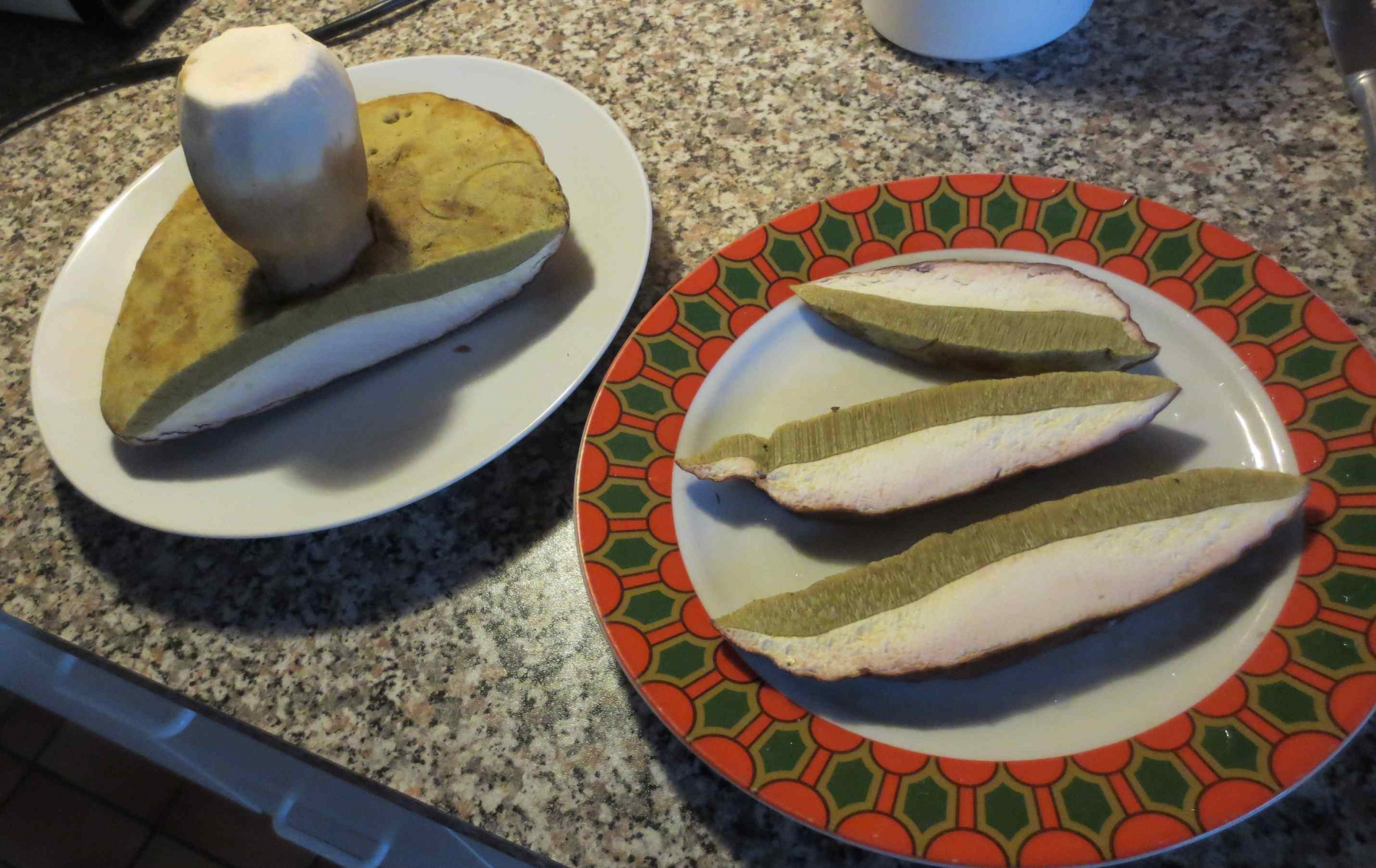 pilzig. Der Stiel war beim Abschneiden ziemlich fest.