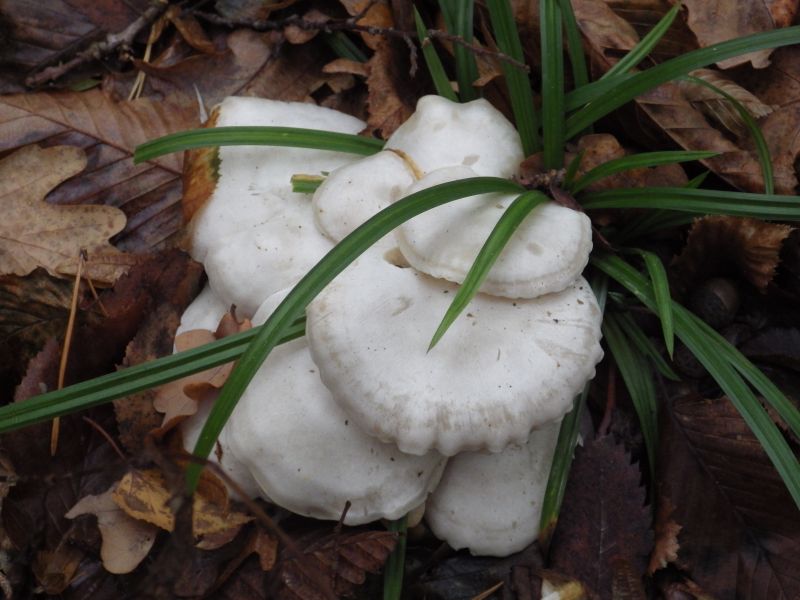 Hi, gefunden habe ich diesen Pilz am Rande eines Wanderweges. An der Seite wo der Pilz wuchs stehen Laubbäume und Nadelbäume, wie Kiefer, Eiche und Buche (oder auch Hainbuche, ich bin mir da nicht so sicher). An der anderen Seite, also weiter weg vom Pilz, gab es nur Laubbäume. Die Pilze waren wirklich weiß, ich habe sie zuerst für Abfall gehalten. Kann mir jemand helfen?