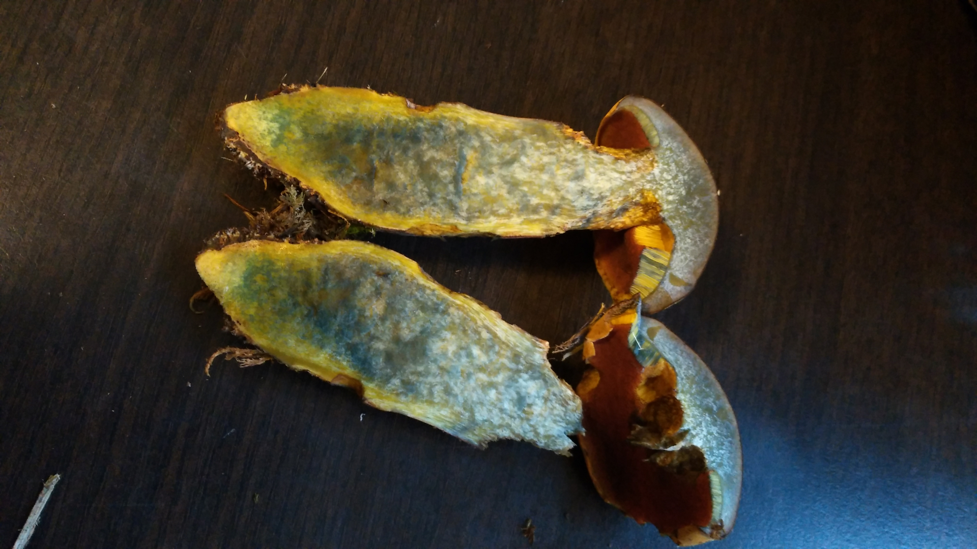 Hallo haben heute abend beim Waldspaziergang diese zwei Pilze gefunden könnt ihr mir weiterhelfen um welches Exemplar es sich hier handeln könnte?