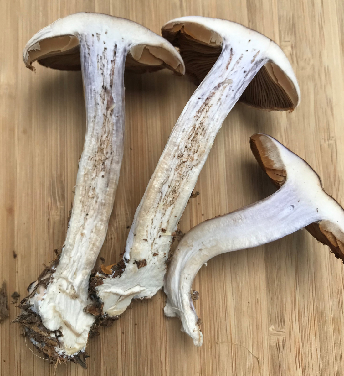 Auffallend langer Stiel und lila Färbung insbesondere am Stiel. Kein typischer Geruch feststellbar.