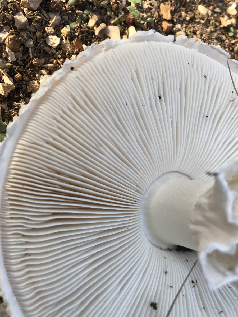 Lamellen: jung weiß, später gelblich, splittern, durchaus leichte Schärfe - deutlich zu schmecken, Anastomosen auf dem Grund