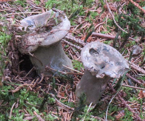 12. Der dritte im Bunde sollte ein grauer Scheidenstreifling (Amanita vaginata) sein - wenn man die Farbe noch als graubraun durchgehen lassen kann: