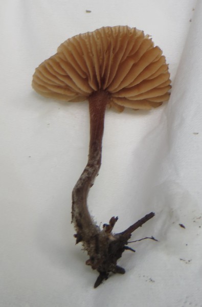 3. In einem Feuchtgebiet im Wald fand ich den folgenden Pilz mit 4 cm Hutdurchmesser, vielleicht ein ockerbrauner Rötling (Entoloma cetratum):