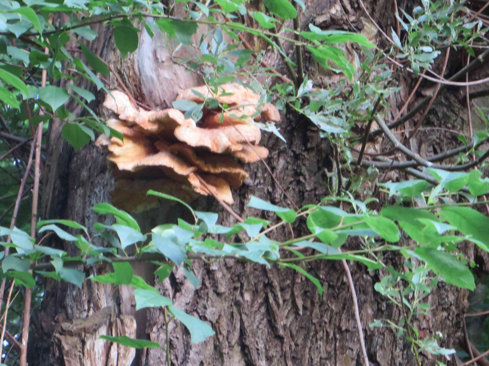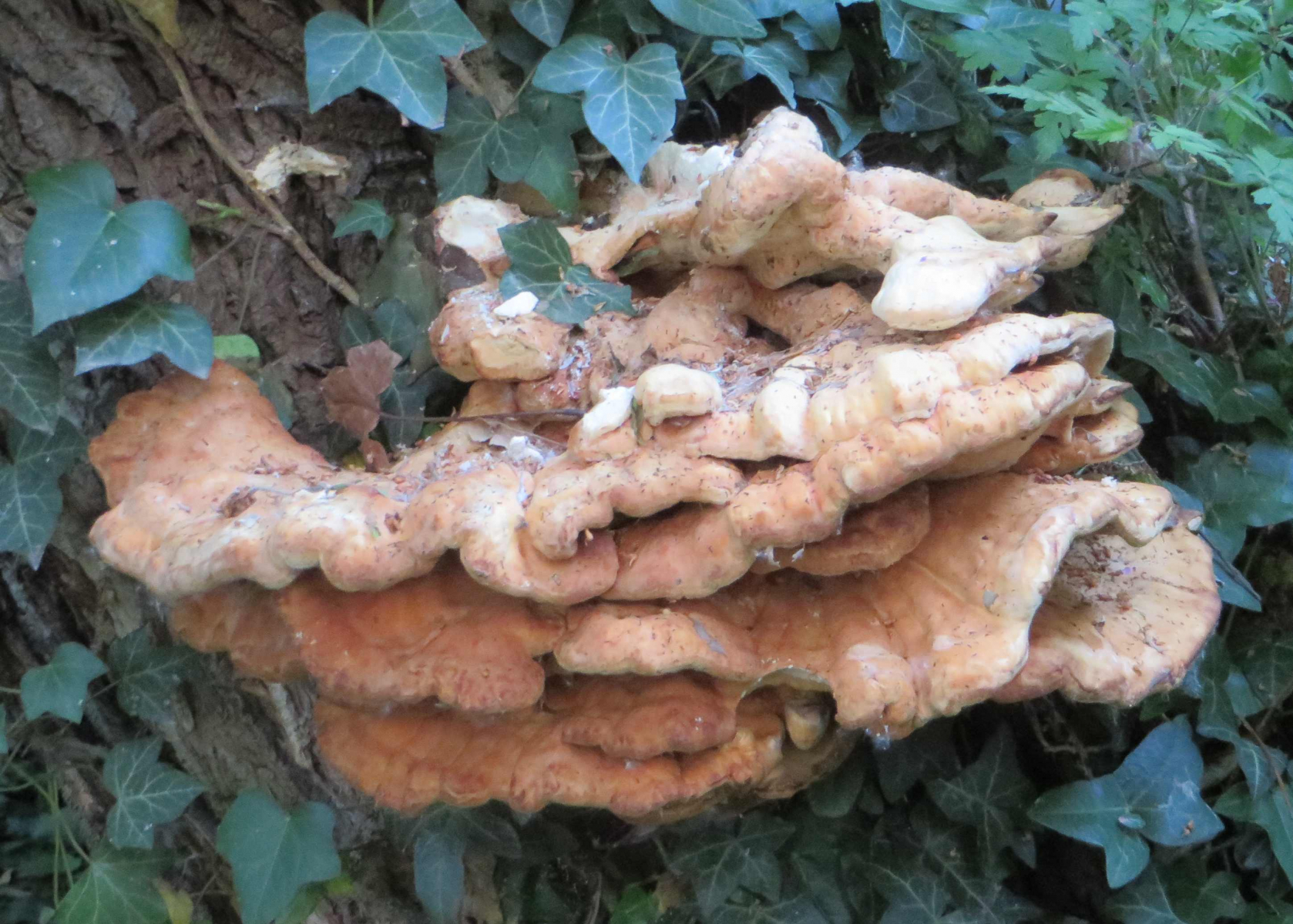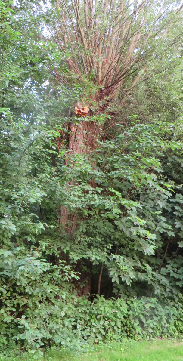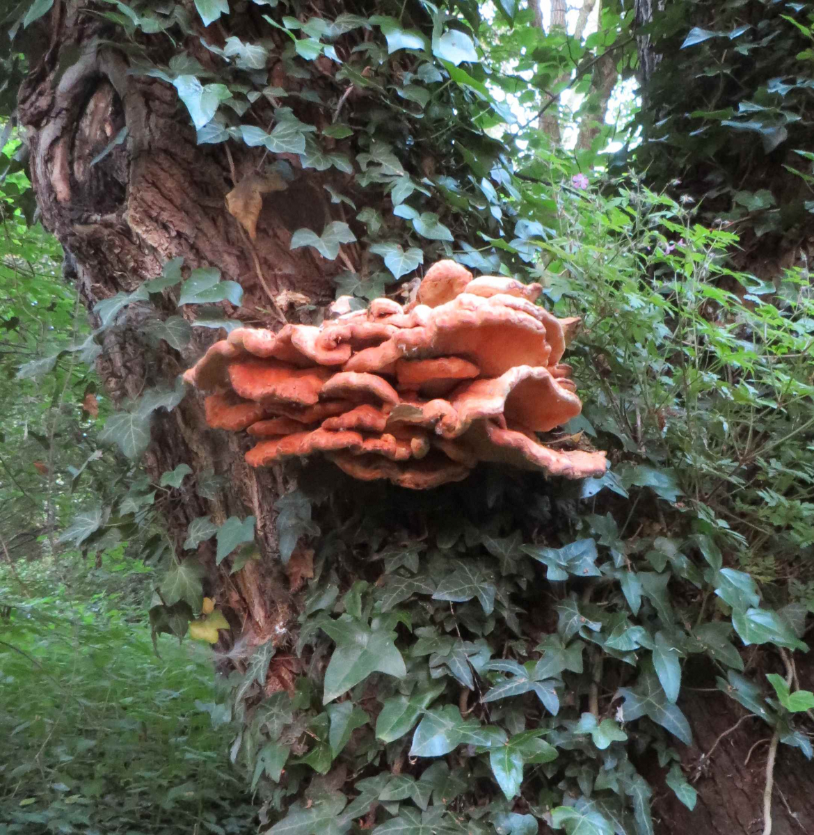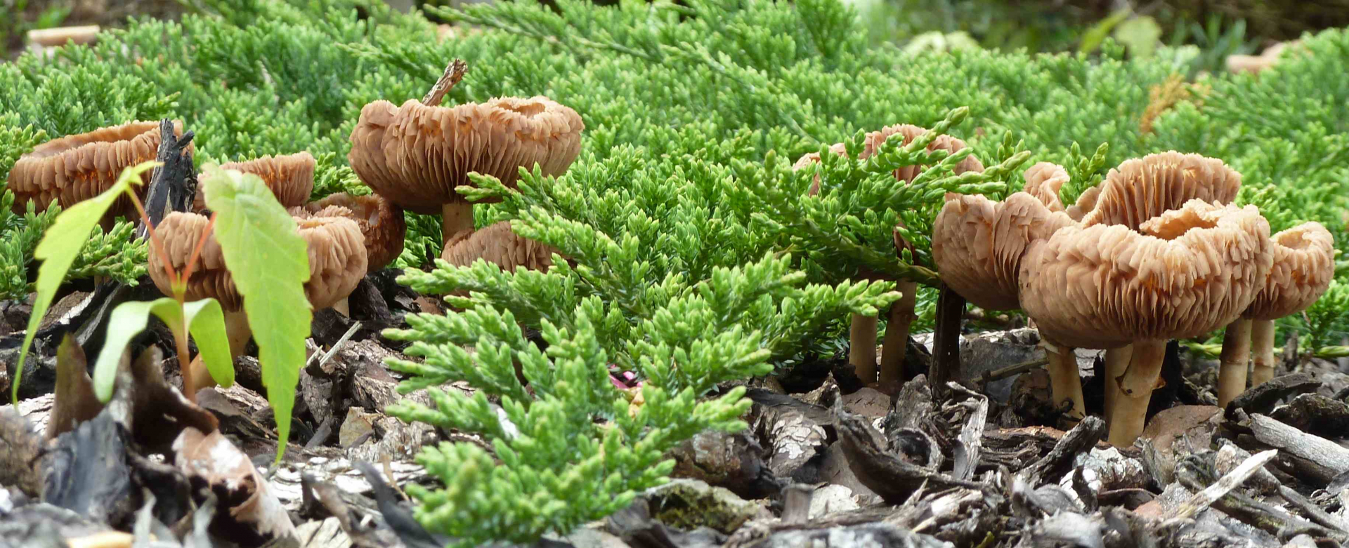 1. Hier die Fundstelle mit breitblättrigen Rüblingen auf Totholz, in einem Buchenwald: