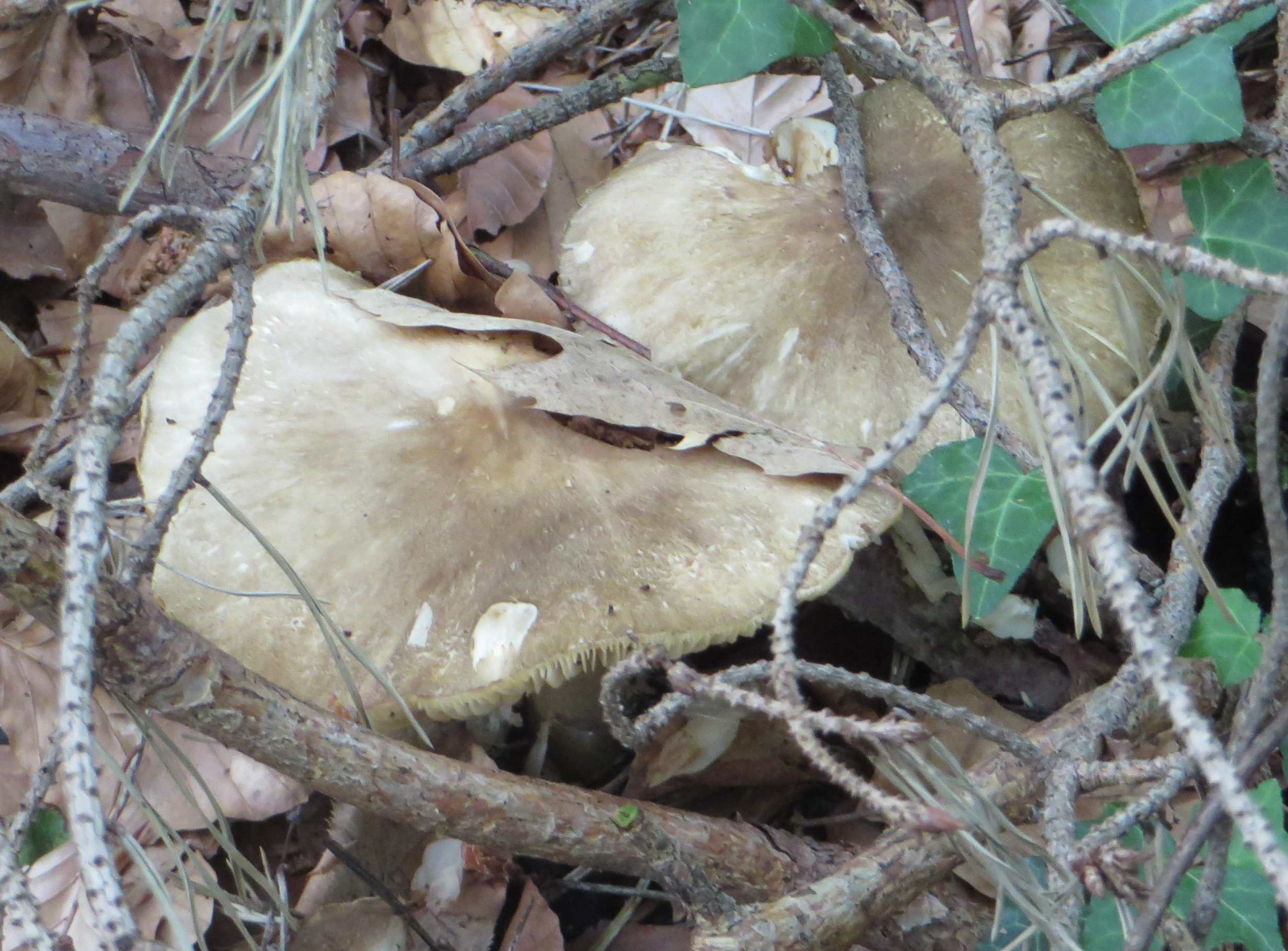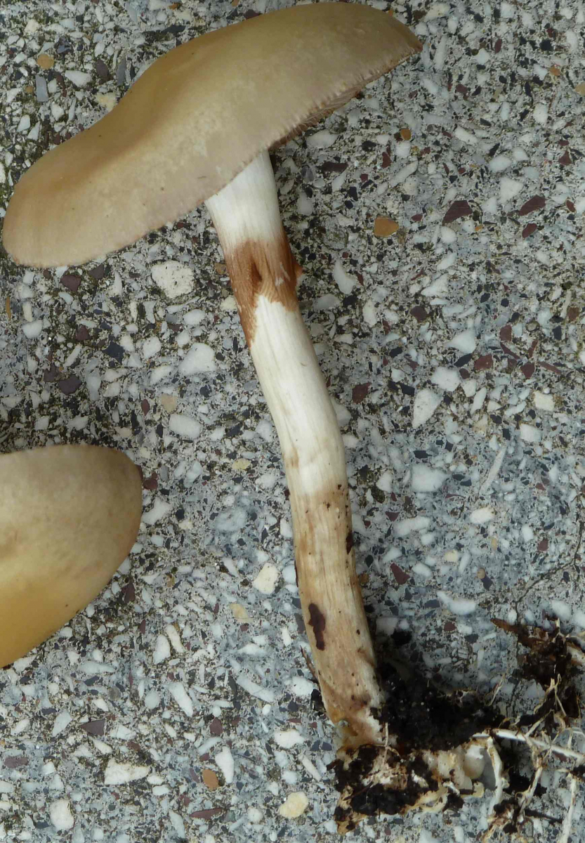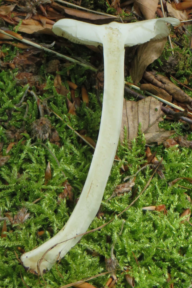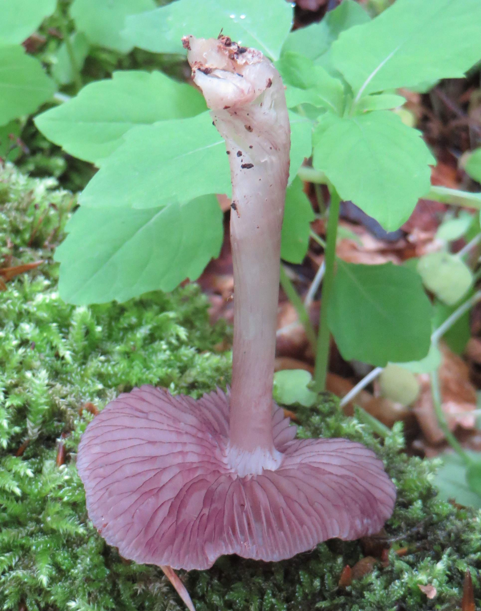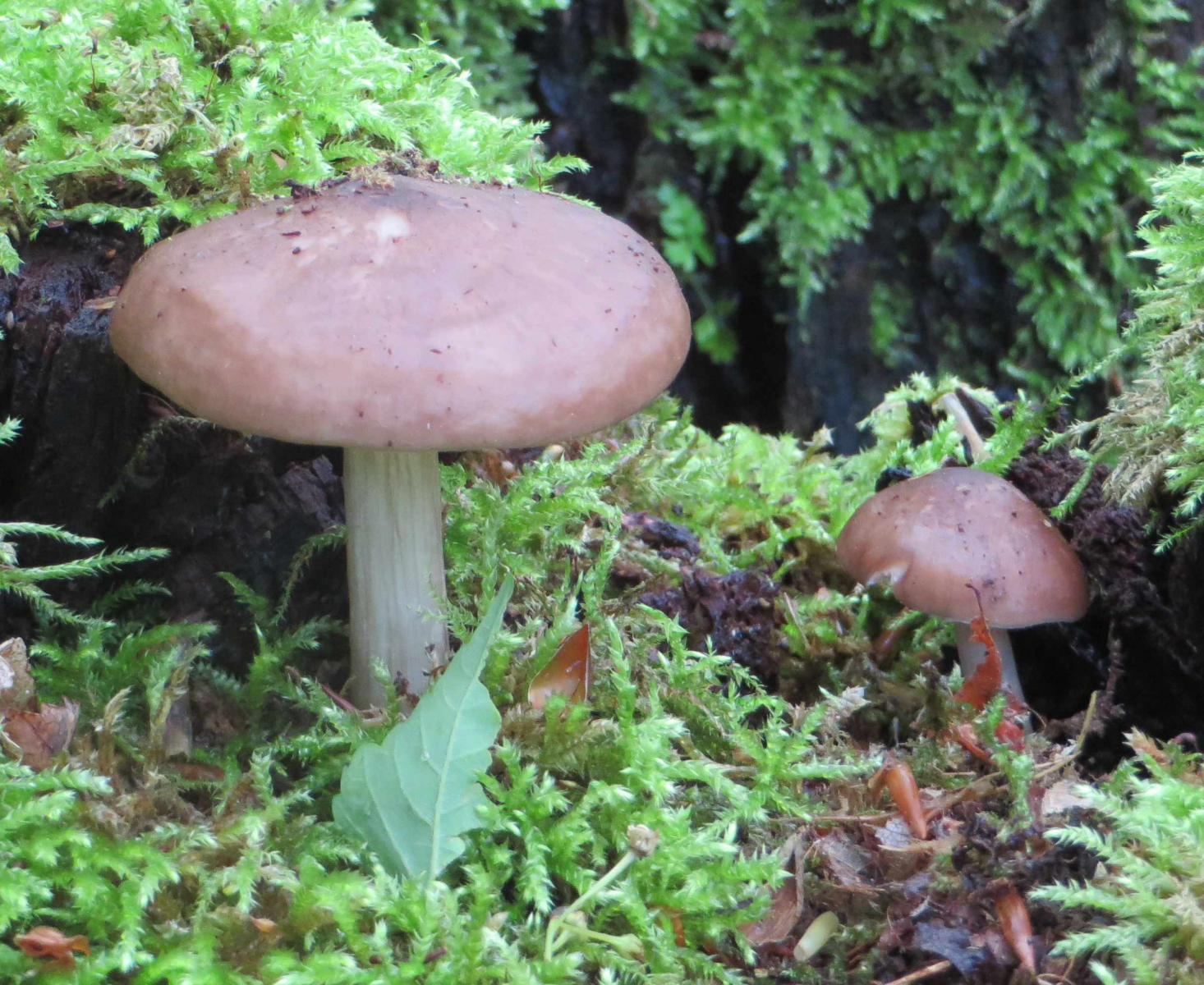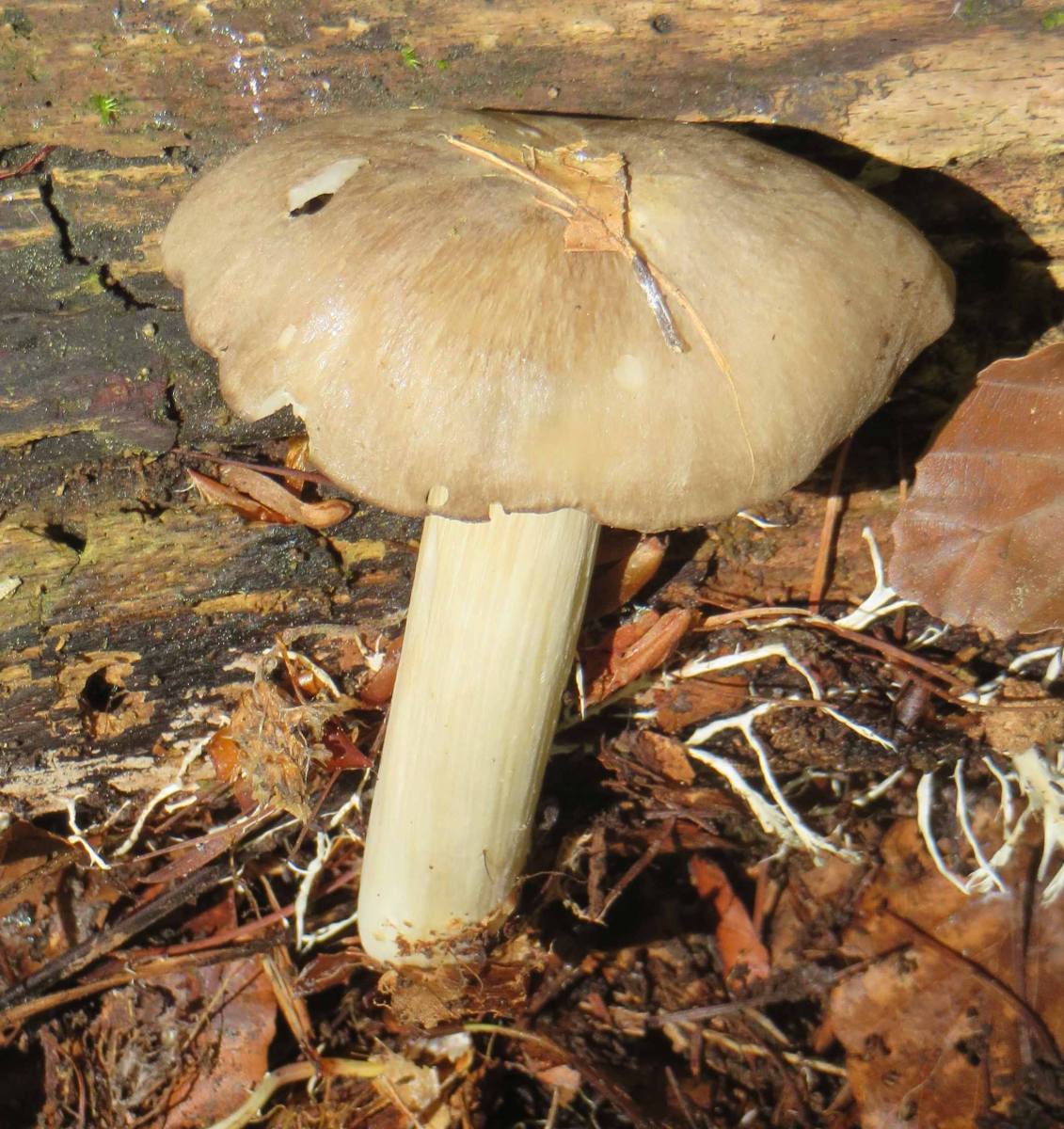 2. Die folgenden Pilze hatten 5-6 cm Durchmesser mit deutlich längeren Stielen, rissen (bei trockenem Wetter) im Alter seitlich auf, hatten schwachen (evtl. etwas süßlichen) Geruch, wuchsen im gleichen Buchenwald auf dem Erdboden: