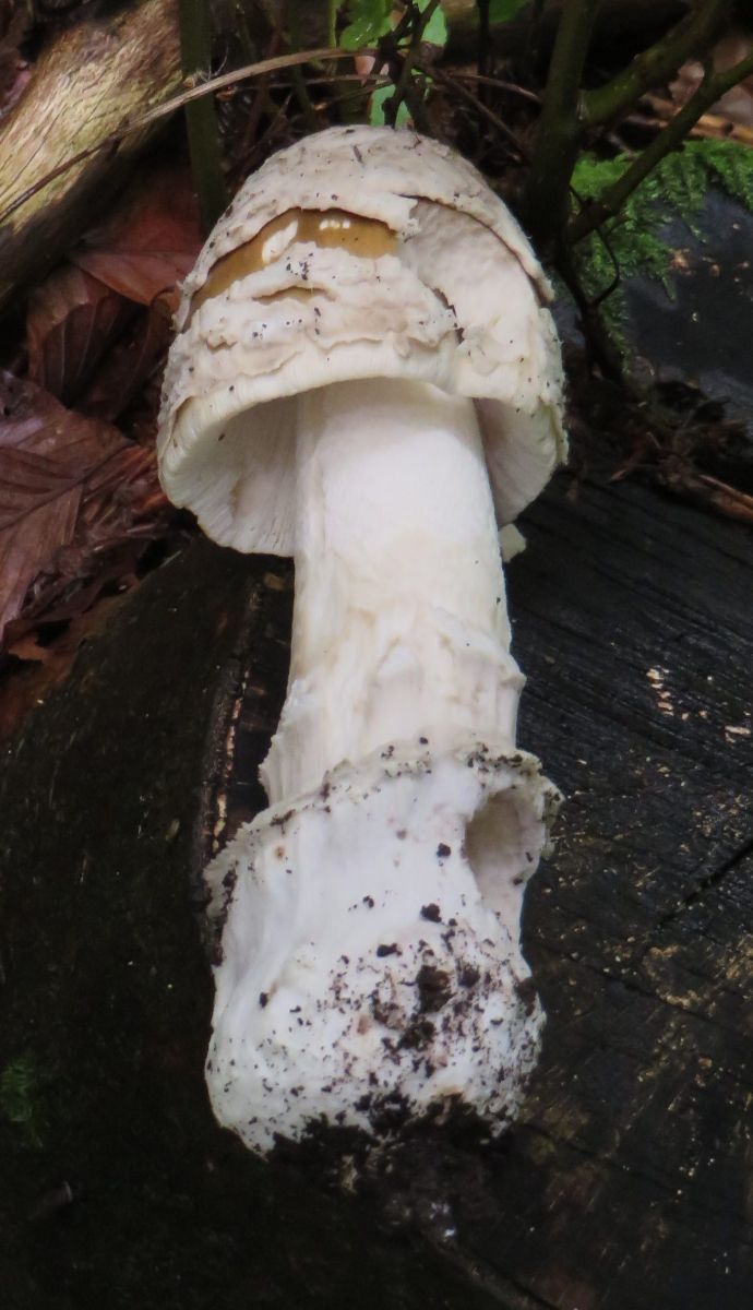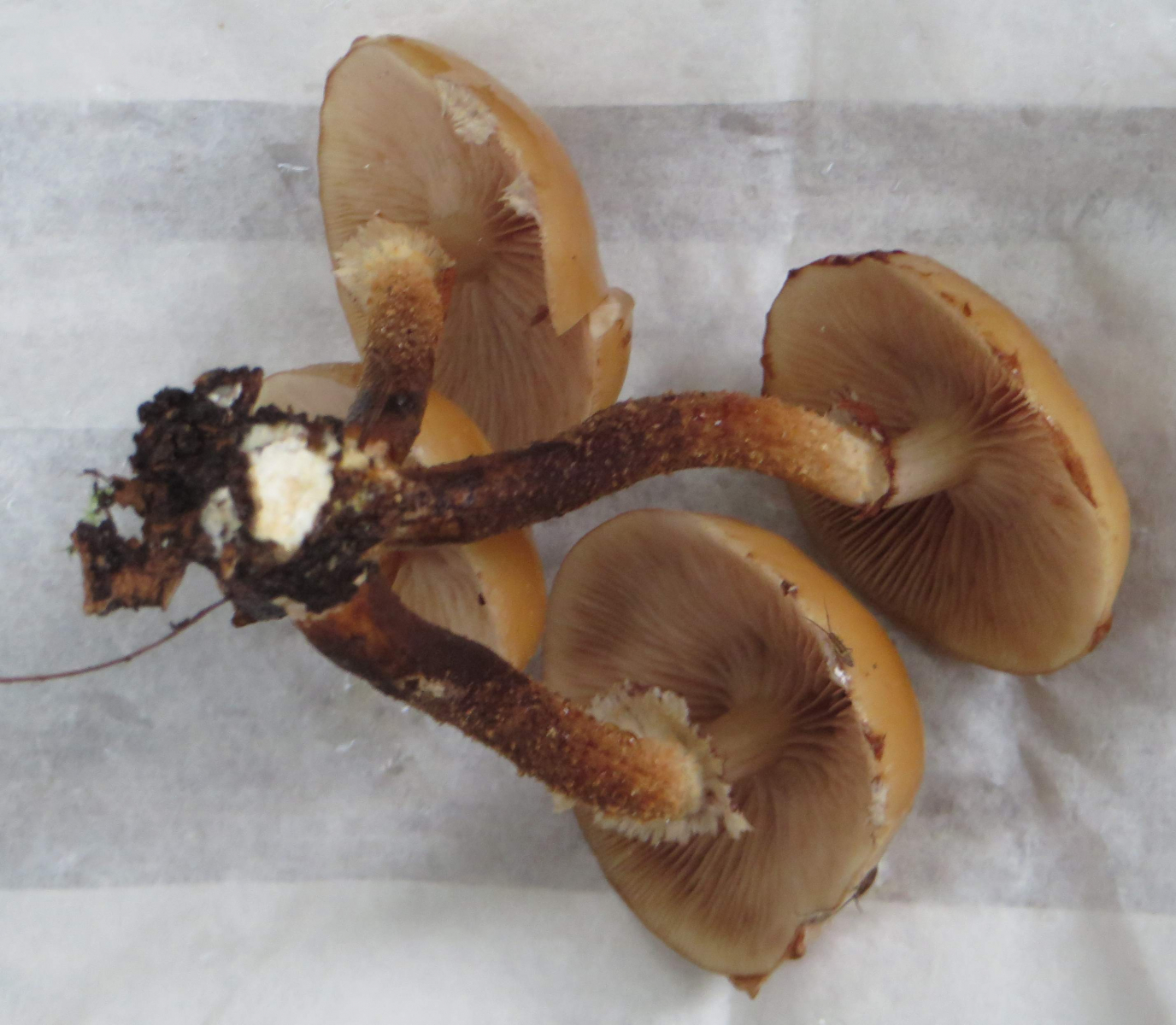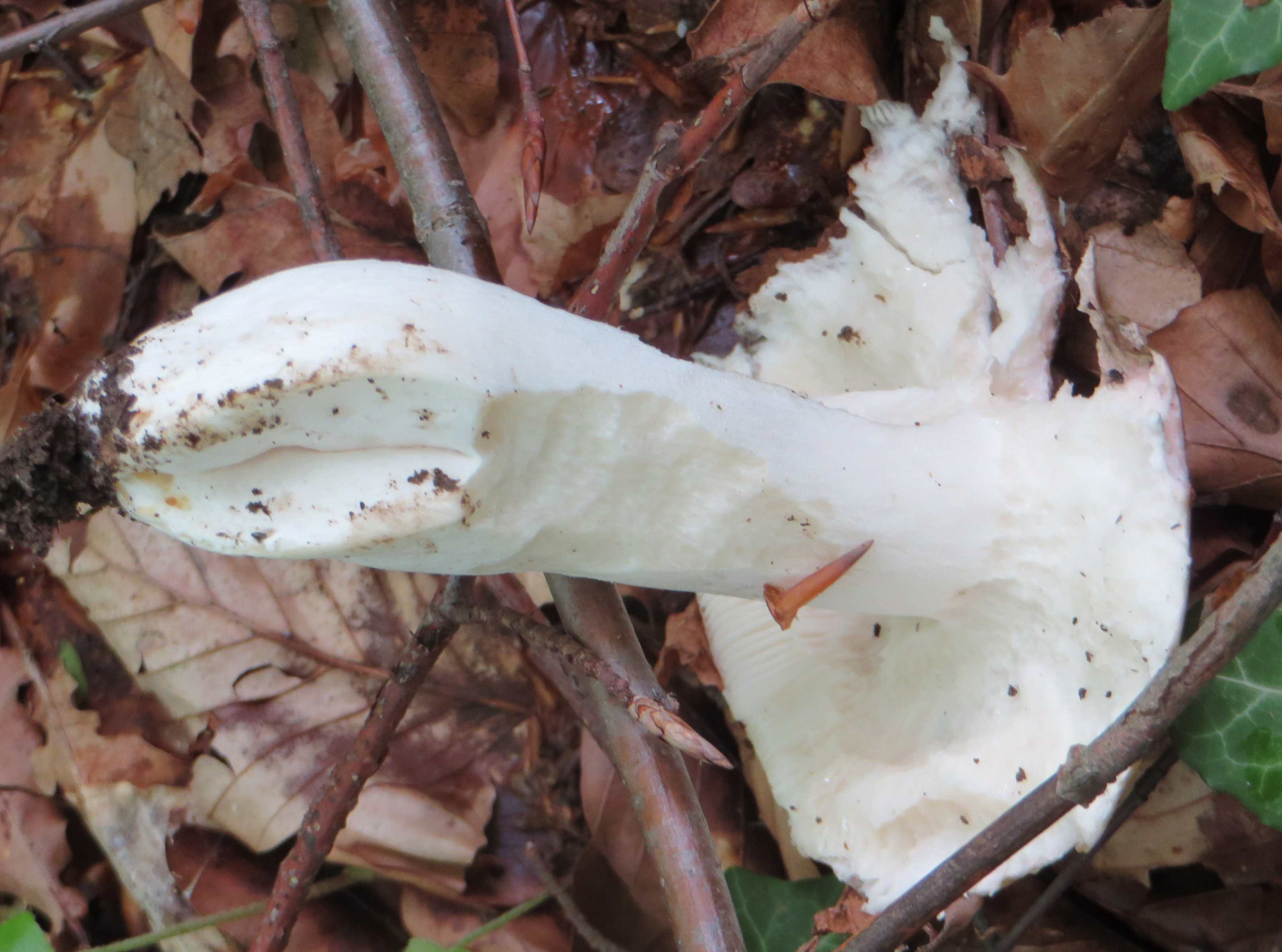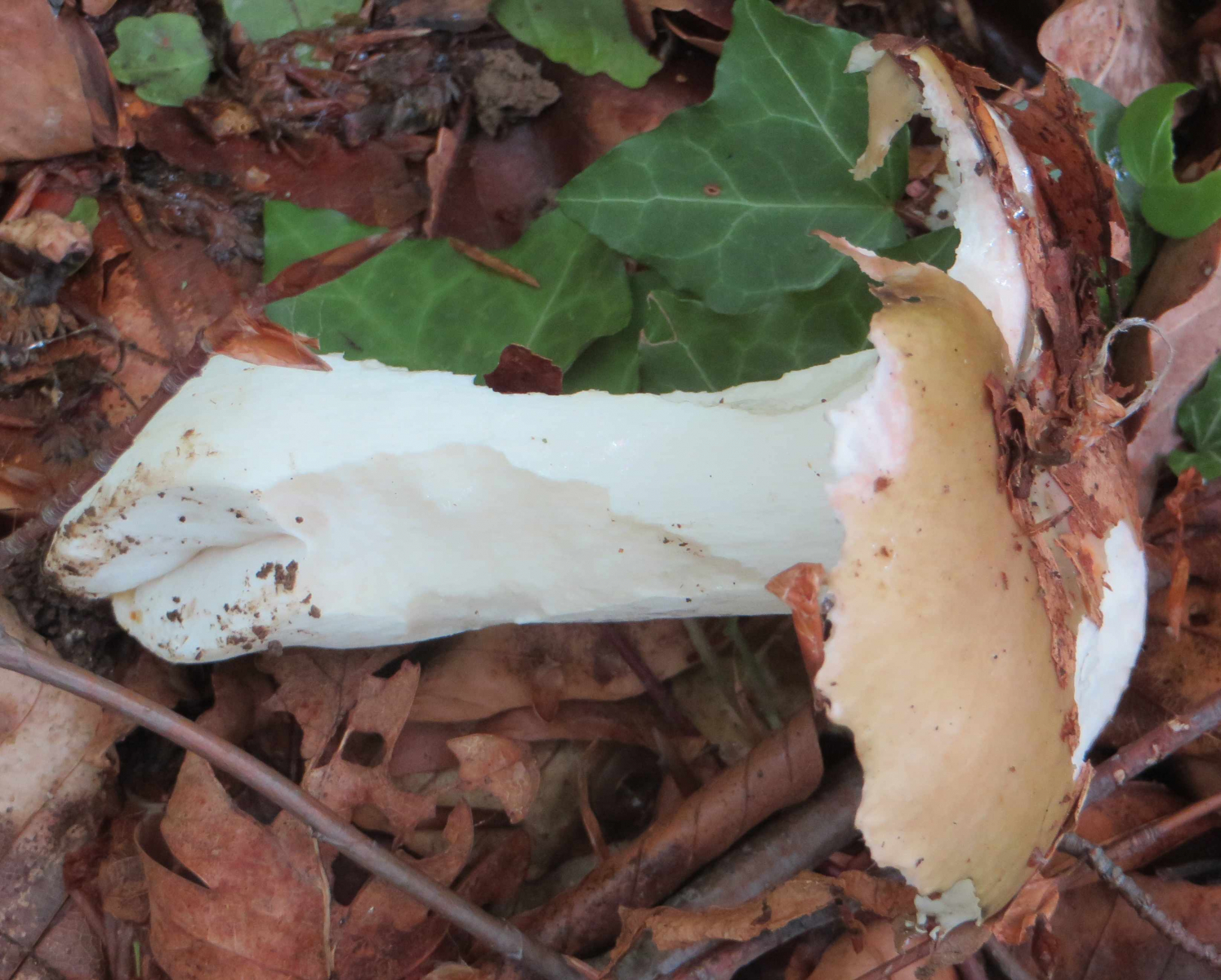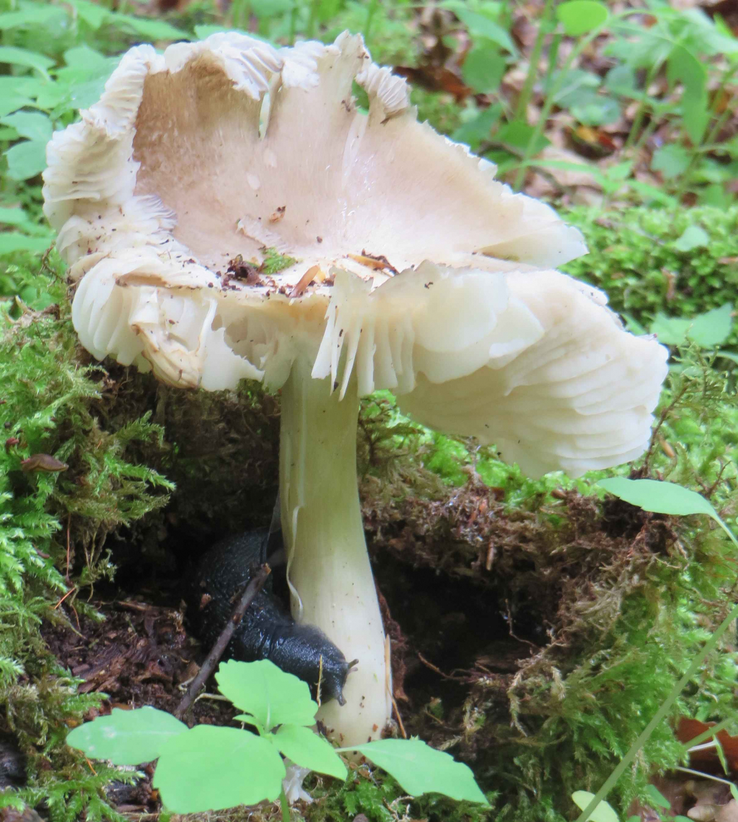 2. Die folgenden Pilze hatten 5-6 cm Durchmesser mit deutlich längeren Stielen, rissen (bei trockenem Wetter) im Alter seitlich auf, hatten schwachen (evtl. etwas süßlichen) Geruch, wuchsen im gleichen Buchenwald auf dem Erdboden:
