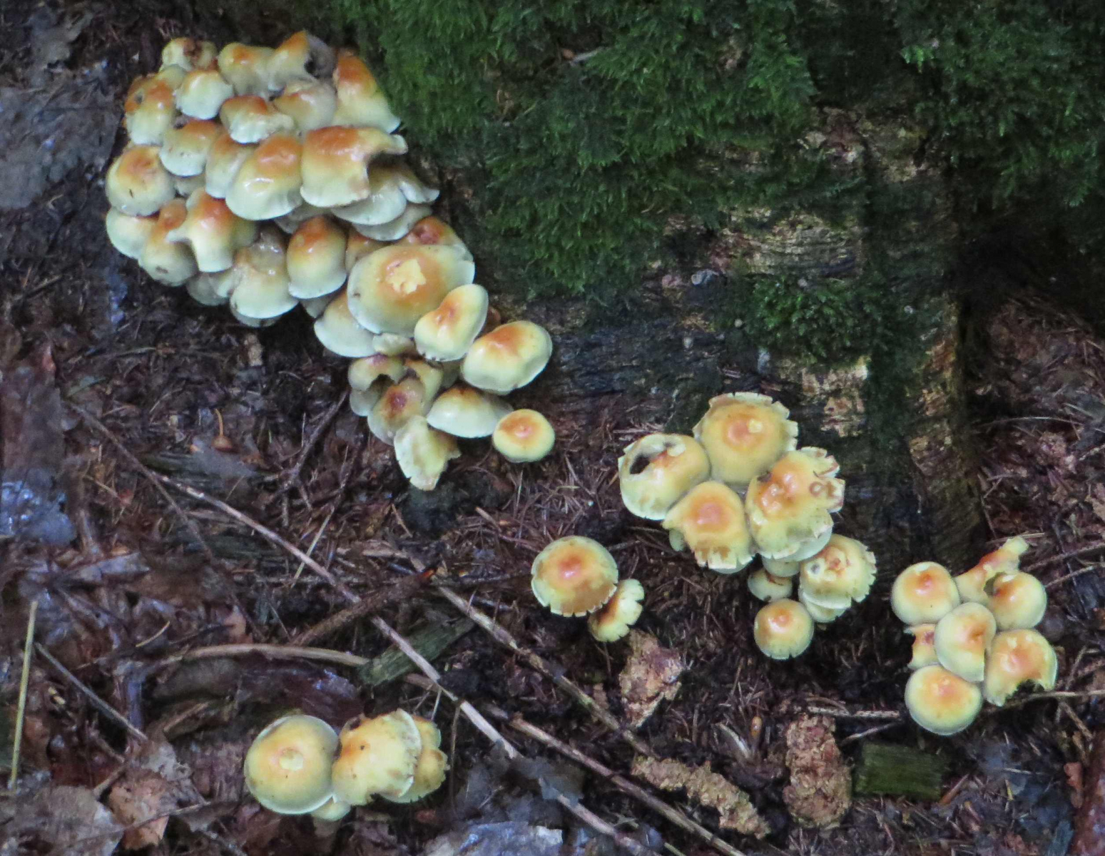 zur Zeit findet man in den Wäldern recht häufig breitblättrige Rüblinge. Wie groß die Variabilität der Art genau ist, ist mir nicht so klar... Ich zeige eine Fundstelle mit breitblättrigen Rüblingen und dann drei weitere Funde von ähnlichen, aber vielleicht anderen Pilzarten.