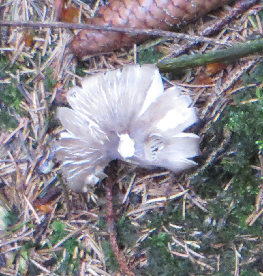 4. Der folgende Pilz wuchs in einem Fichtenwald auf dem Waldboden, Durchmesser 4-5 cm.