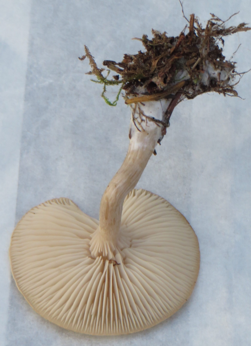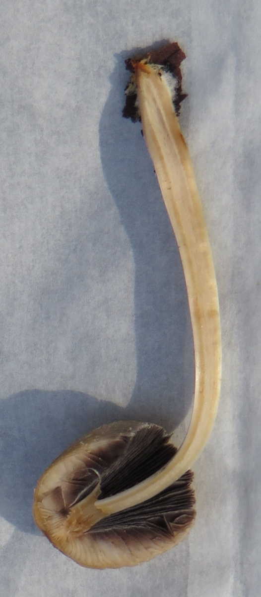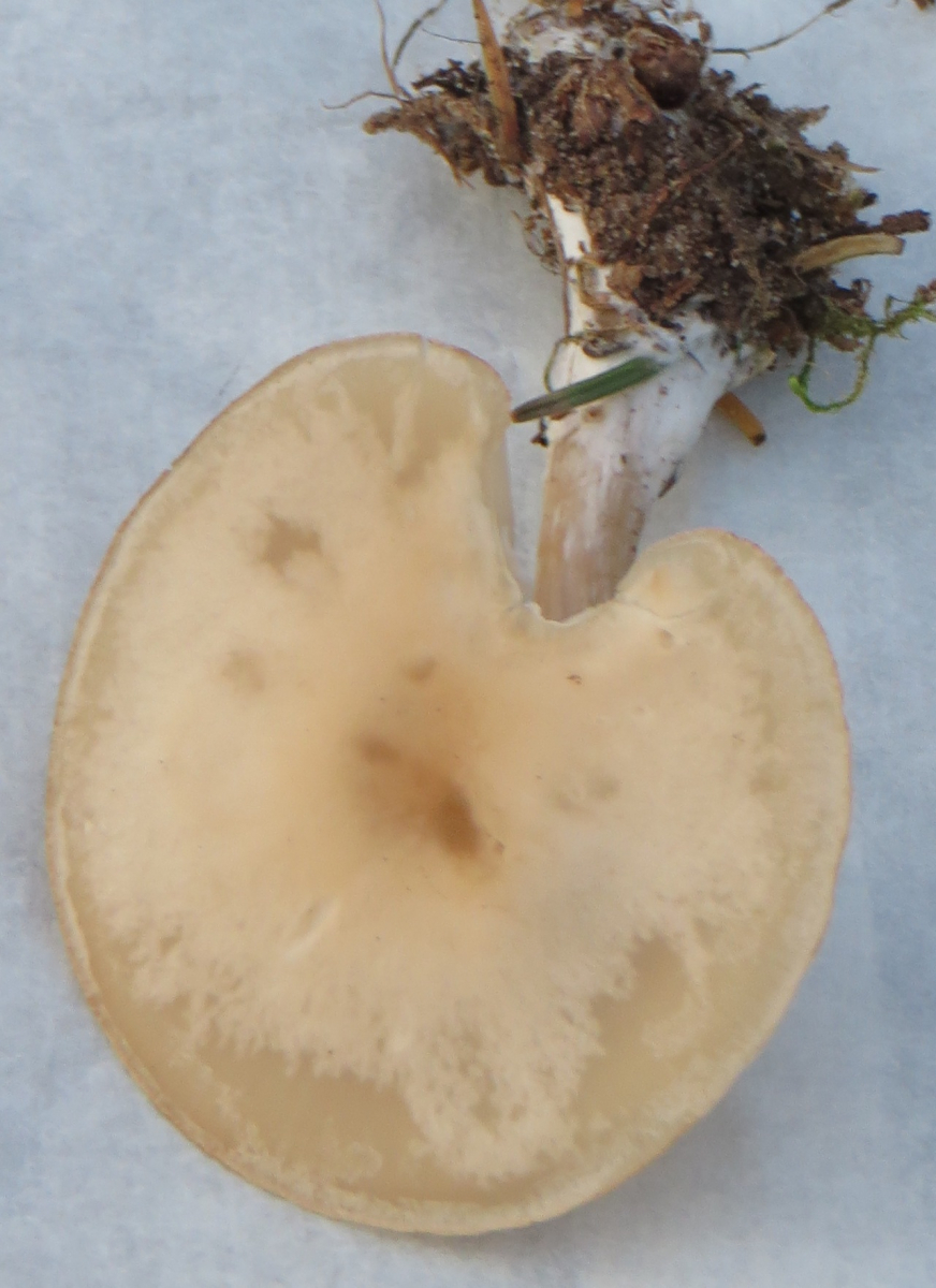 P.S. 20 m weiter stand noch ein kleineres Einzelexemplar, durchgehend cremefarben, der Hut mit 2 cm Durchmesser noch etwas eingerollt.