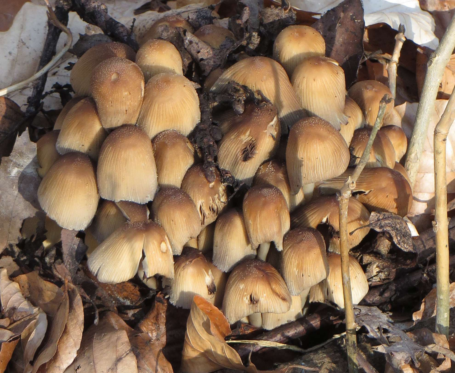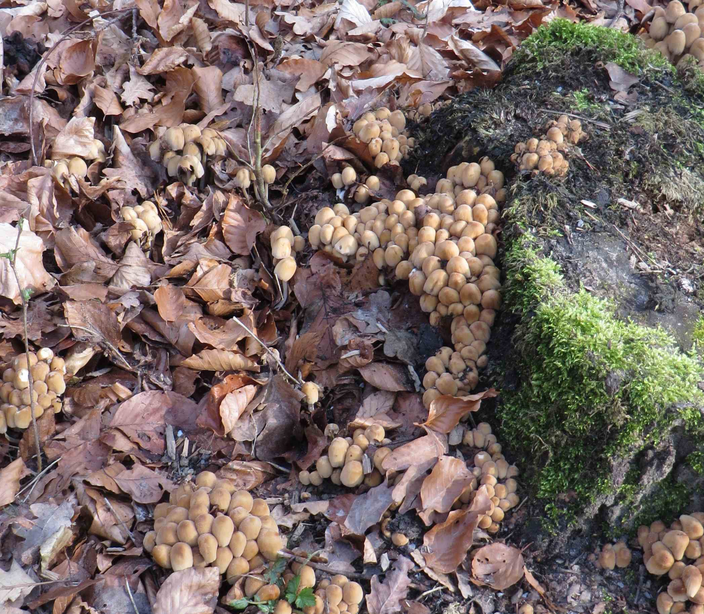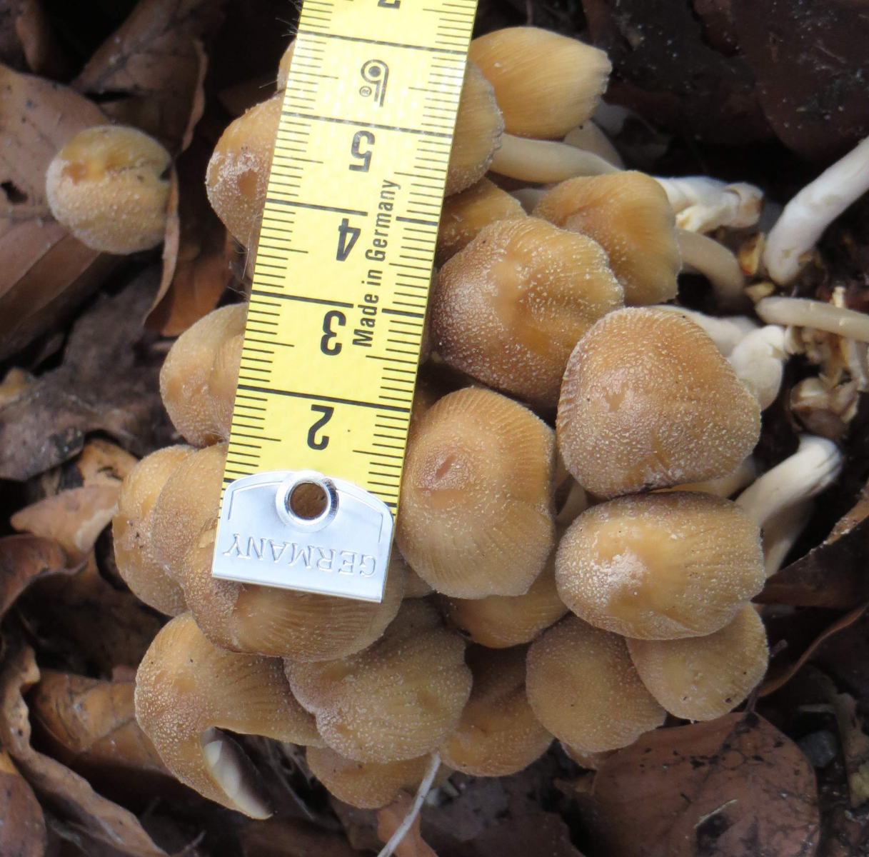 P.S. 20 m weiter stand noch ein kleineres Einzelexemplar, durchgehend cremefarben, der Hut mit 2 cm Durchmesser noch etwas eingerollt.