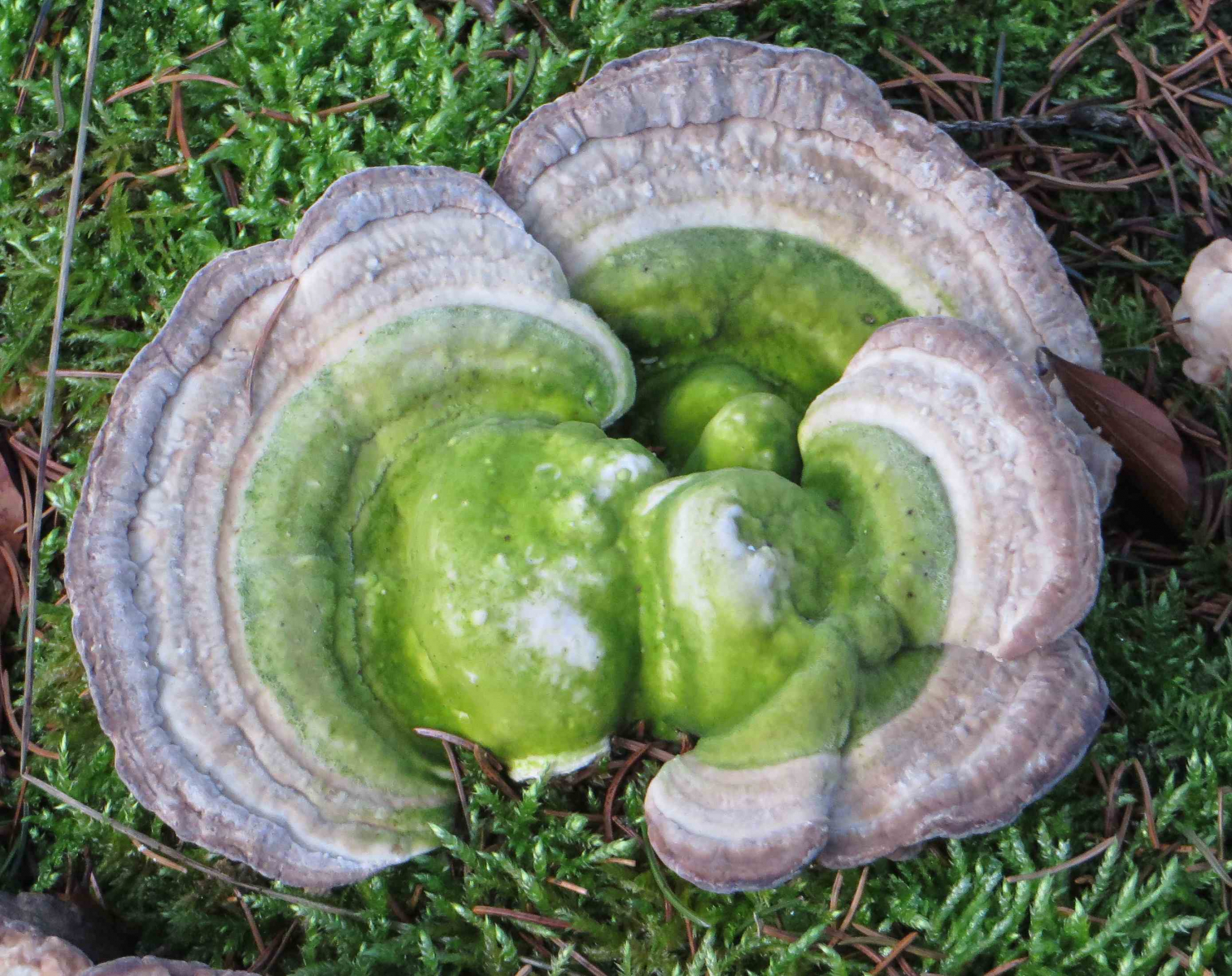 Standort: Zwischen Moos auf Sandboden in einer Gruppe Fichten, umgeben von einem Kiefernwald