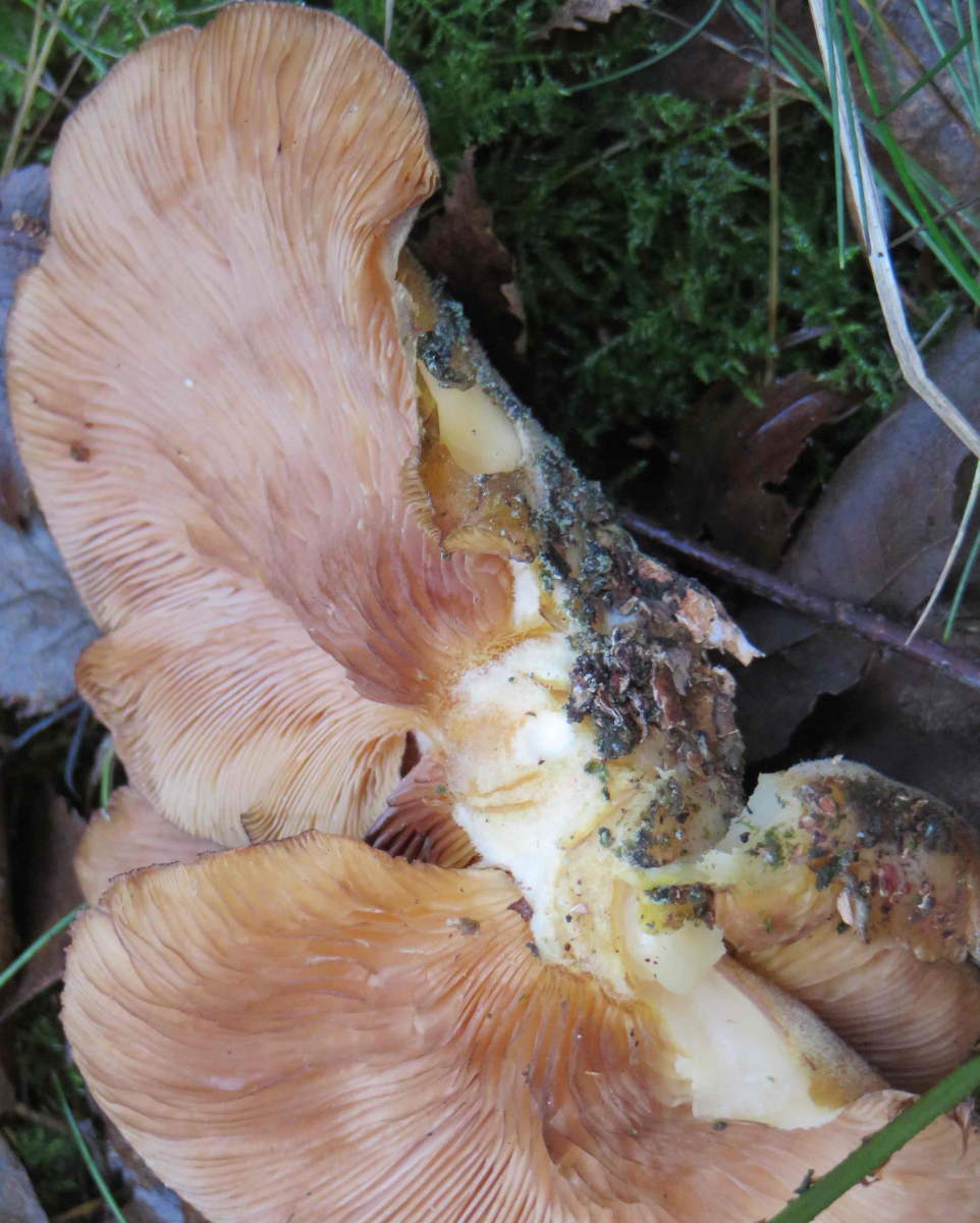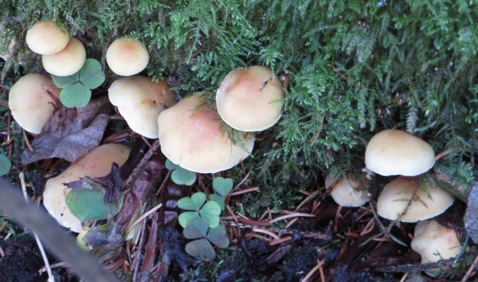 anders als häufig - wenn beim Wenden des Pilzes ein freches Grün dem Sammler spottet - fand ich heute am Fuß dreier Fichtenstrünke einige rauchblättrige Schwefelköpfe. Es wäre schön, wenn außer mir noch jemand darüber schaut.
