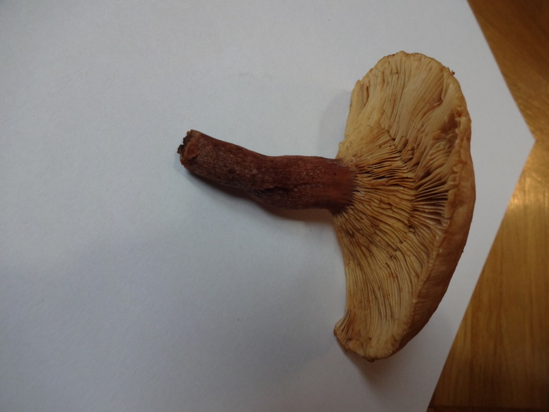 Dann bin ich im Internet auf den "montanen Zonen-Milchling" gestoßen, der meinem Pilz an sich ähnlich sieht. Allerdings tritt bei mir eigentlich gar kein Saft aus, und der Stil meines Pilzes ist dunkelbraun. Eine Kostprobe hat ergeben, dass er auch nicht scharf ist, wie beschrieben.