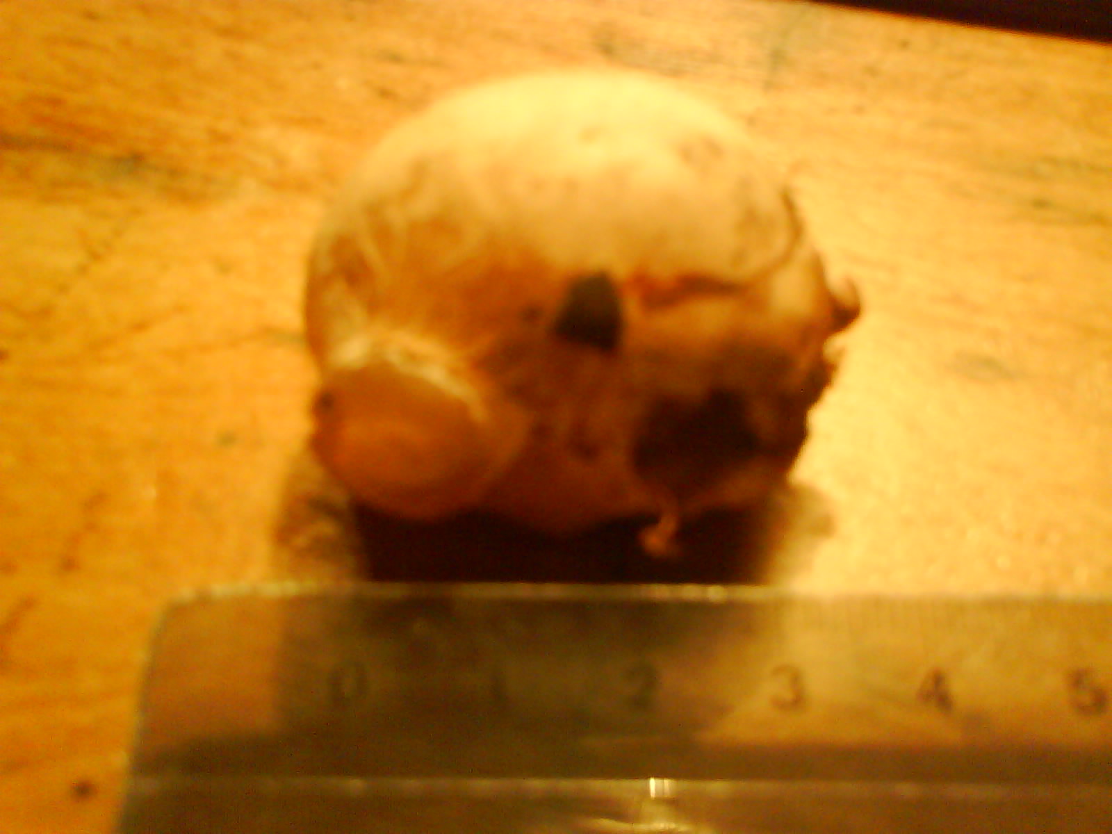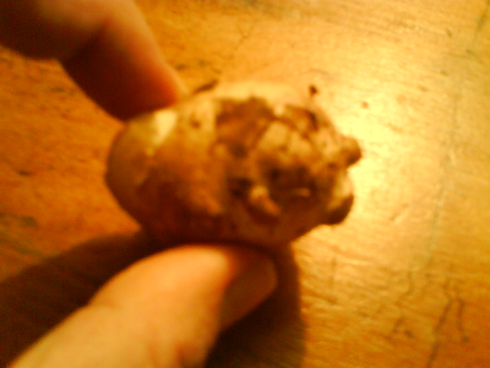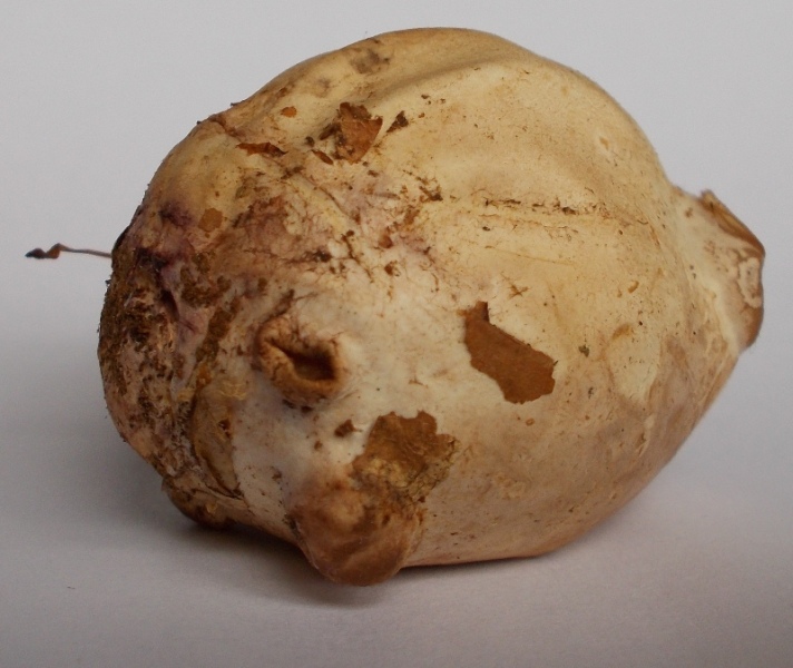 Gefunden neben einer (von Wildschweinen?) nur flach aufgewühlten Fläche im lichten Buchen-, Eichenwald. Größe ca. 3x3x4 cm, kein Geruch, gibt bei leichtem Druck nach (fühlt sich an, als wäre Gelee drin), hat mehrere "Warzen", ähnlich wie eine Ingwerknolle. An einer dieser Warzen sieht es auch geleeartig aus.