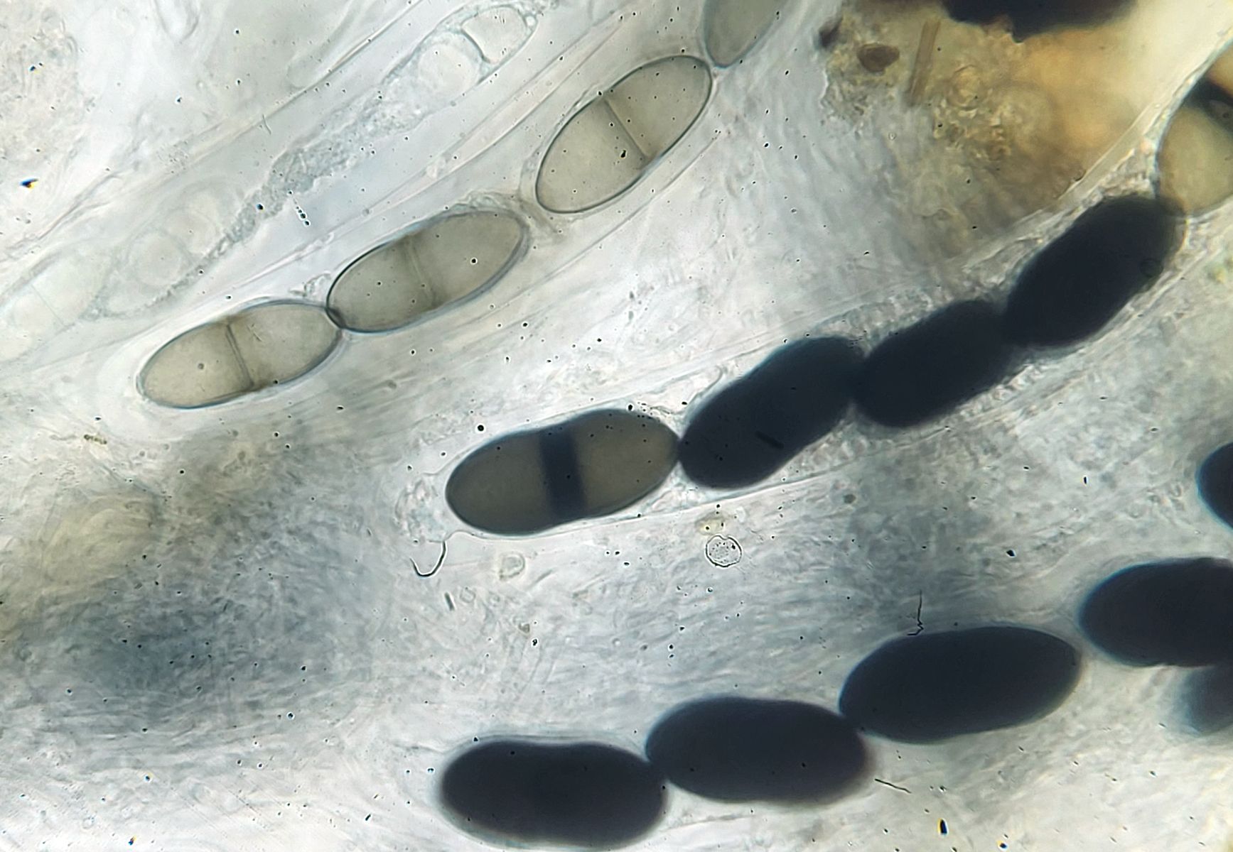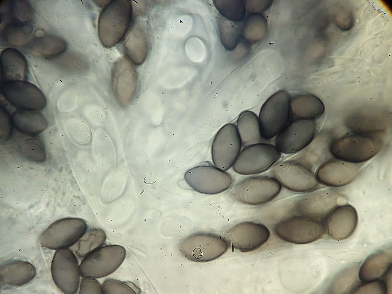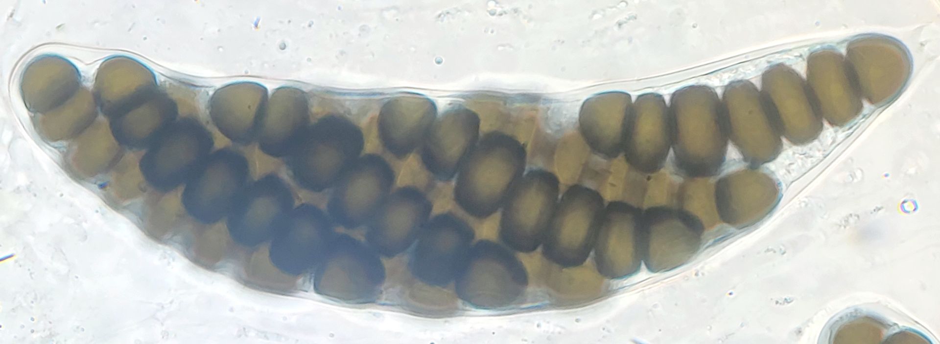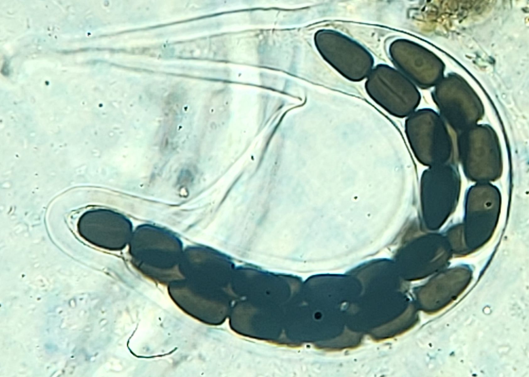 vielen Dank für deine Antwort! Die Größe der Perithecien kann ich mit meinen Mitteln leider nicht vernünftig bestimmen. In dem Fall konnte ich auch die Caudae nicht sichtbar machen, auf dem letzten Bild der beste Versuch mit Tinte. Leider blieb es auch bei einem Perithecium.