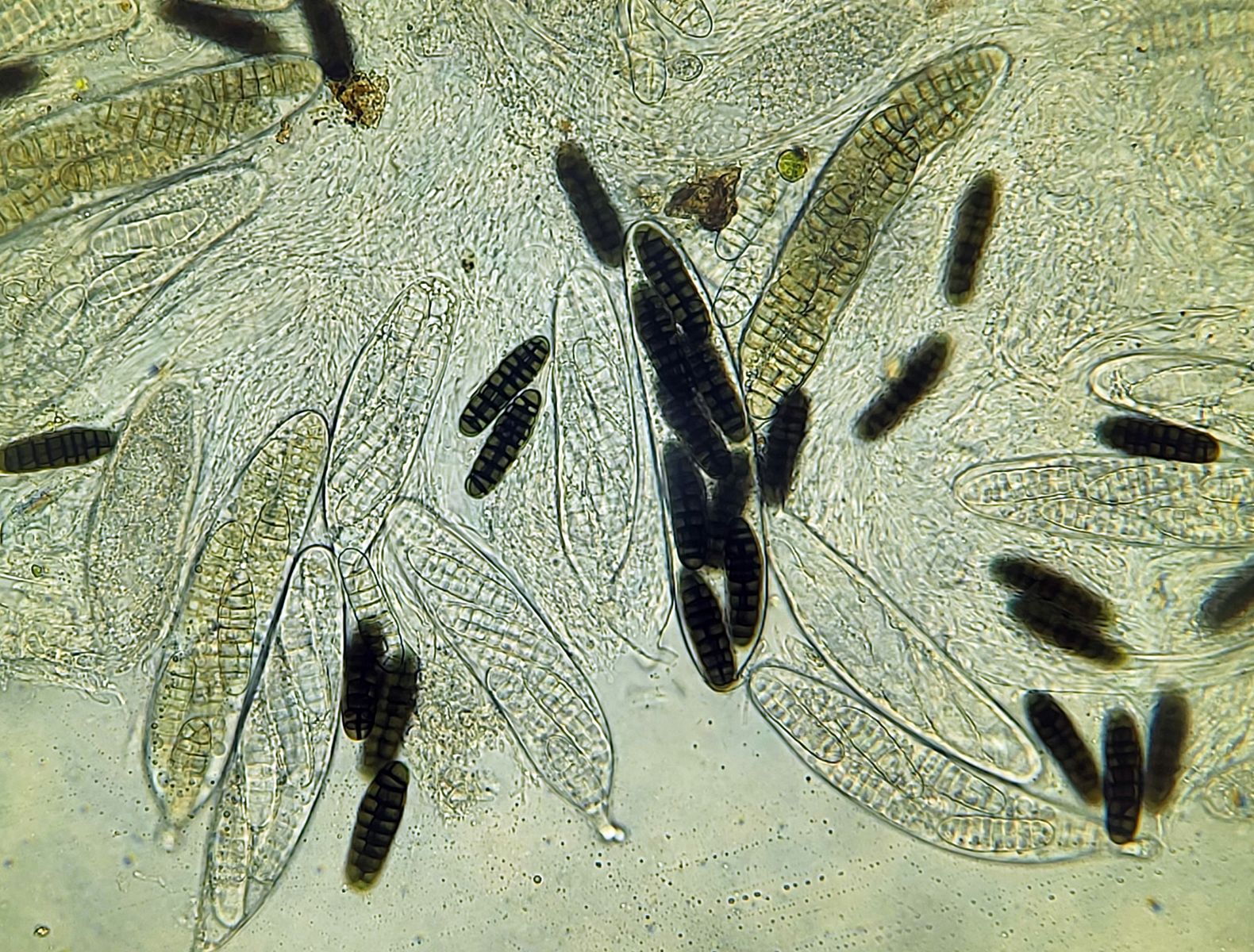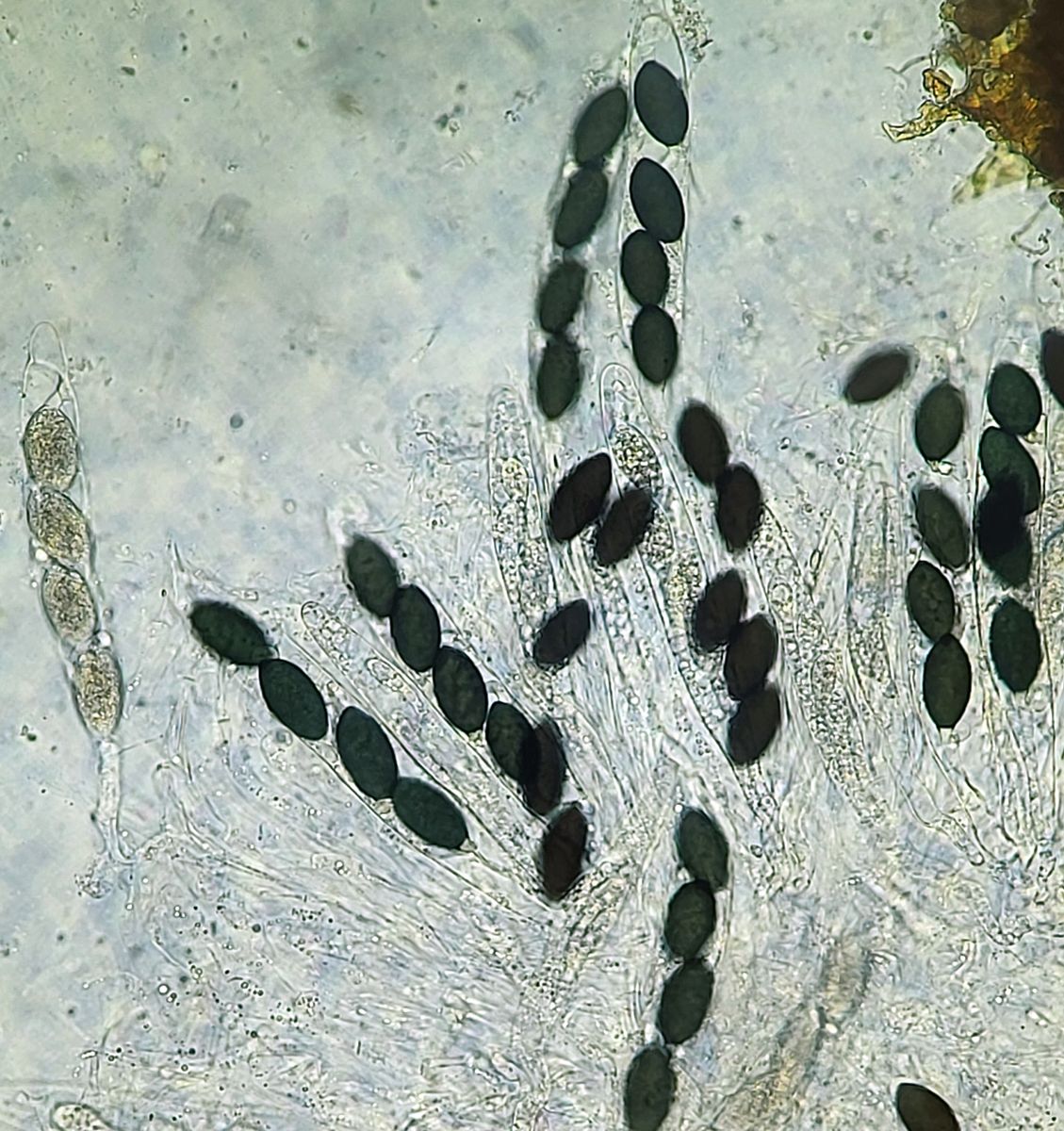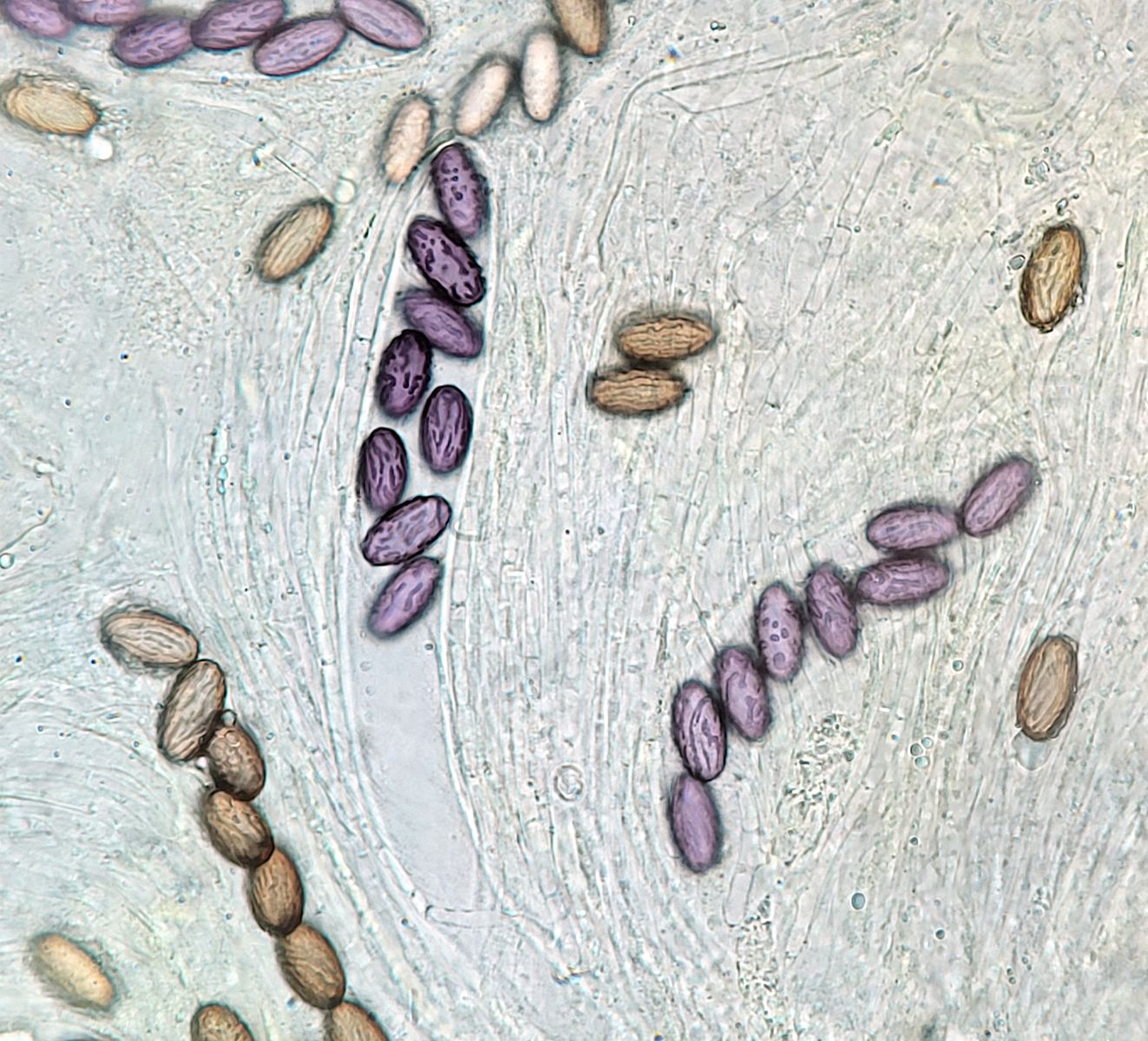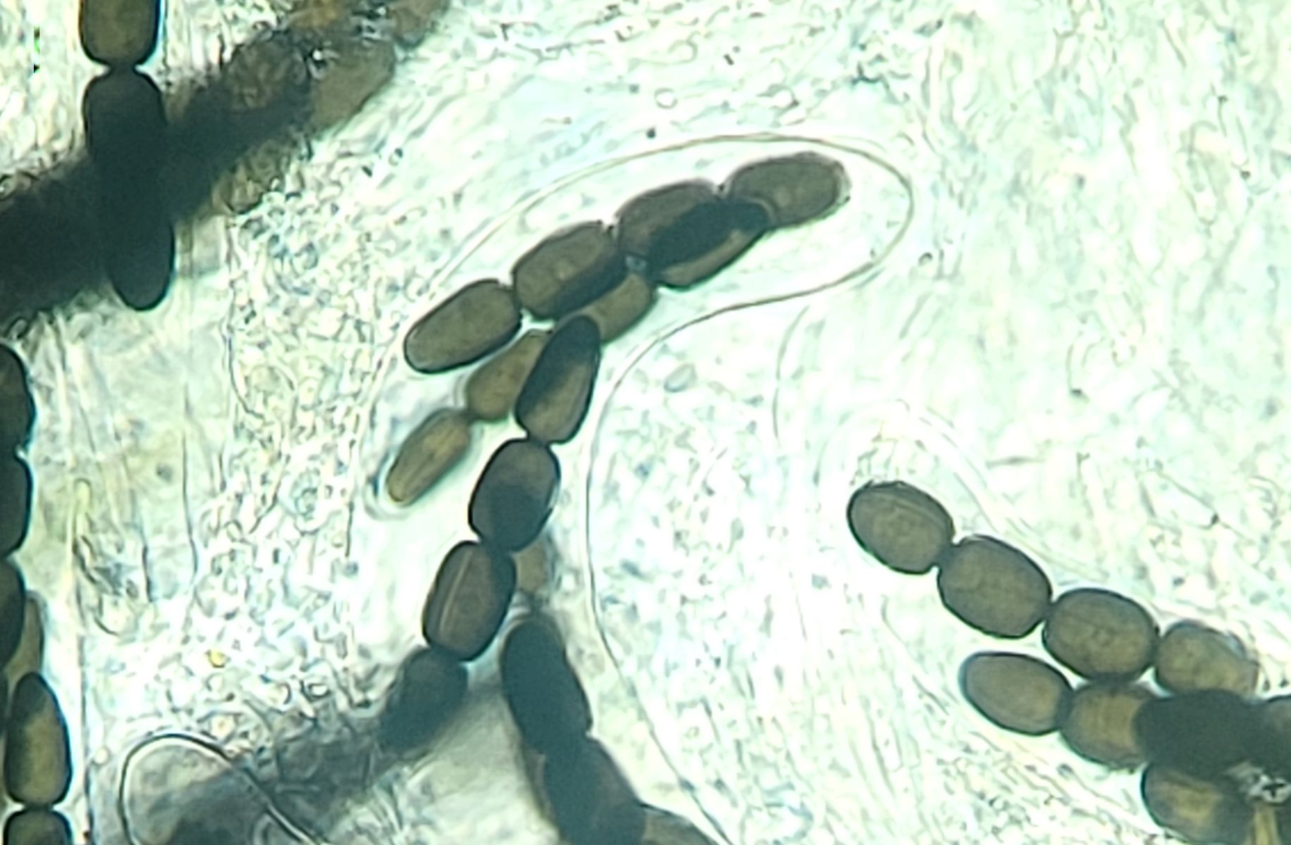 vielen Dank für deine Antwort! Die Größe der Perithecien kann ich mit meinen Mitteln leider nicht vernünftig bestimmen. In dem Fall konnte ich auch die Caudae nicht sichtbar machen, auf dem letzten Bild der beste Versuch mit Tinte. Leider blieb es auch bei einem Perithecium.