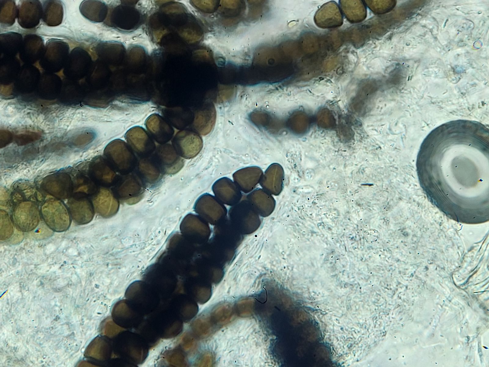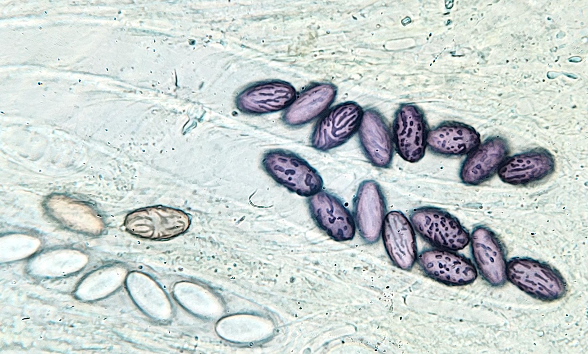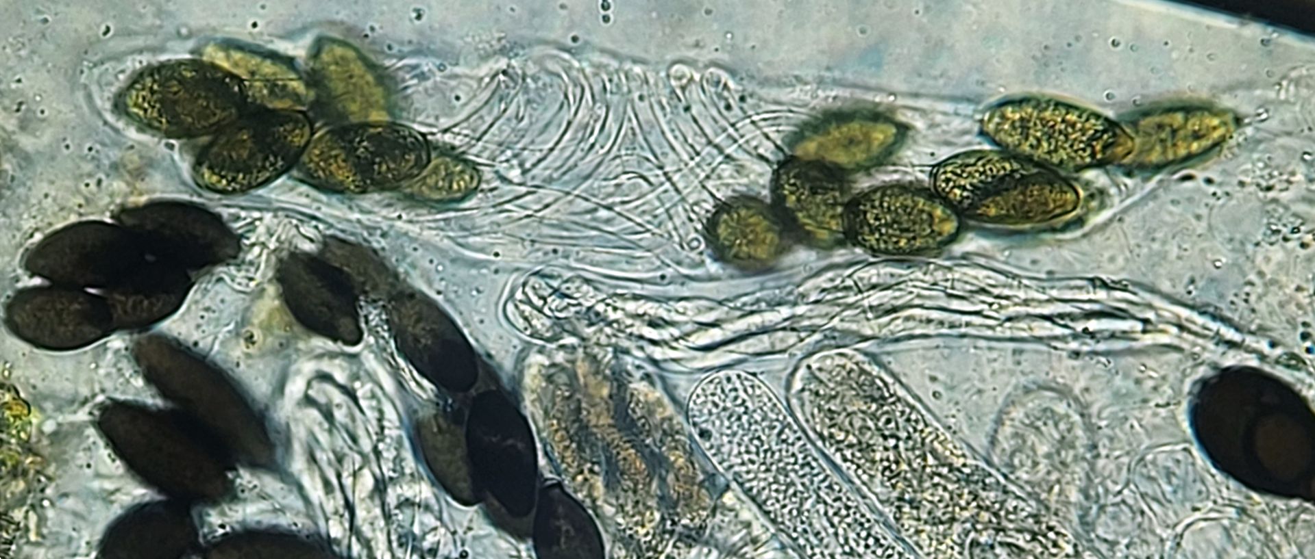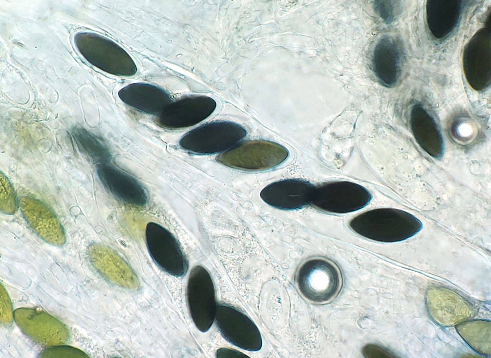 vielen Dank für deine Antwort! Die Größe der Perithecien kann ich mit meinen Mitteln leider nicht vernünftig bestimmen. In dem Fall konnte ich auch die Caudae nicht sichtbar machen, auf dem letzten Bild der beste Versuch mit Tinte. Leider blieb es auch bei einem Perithecium.
