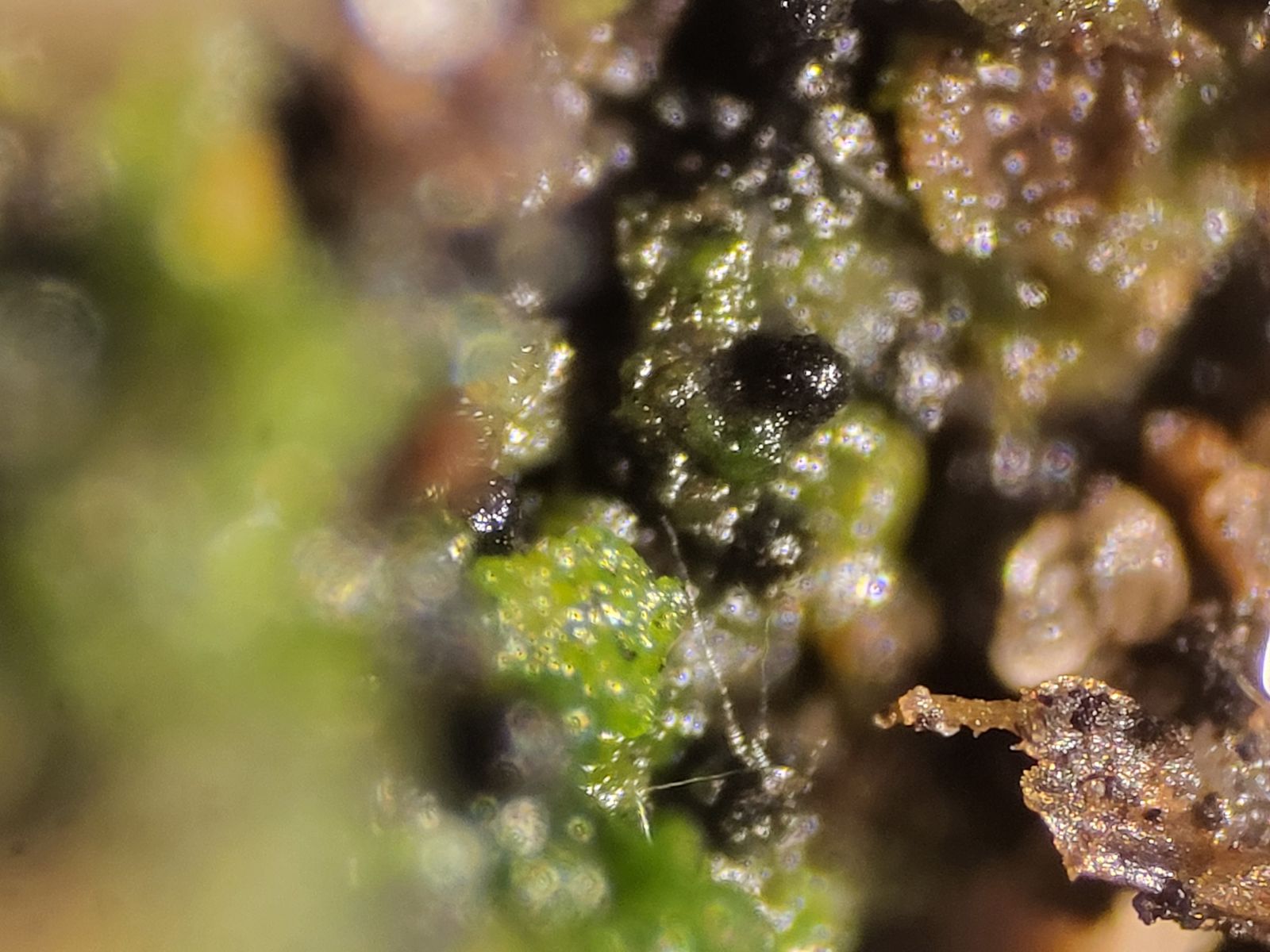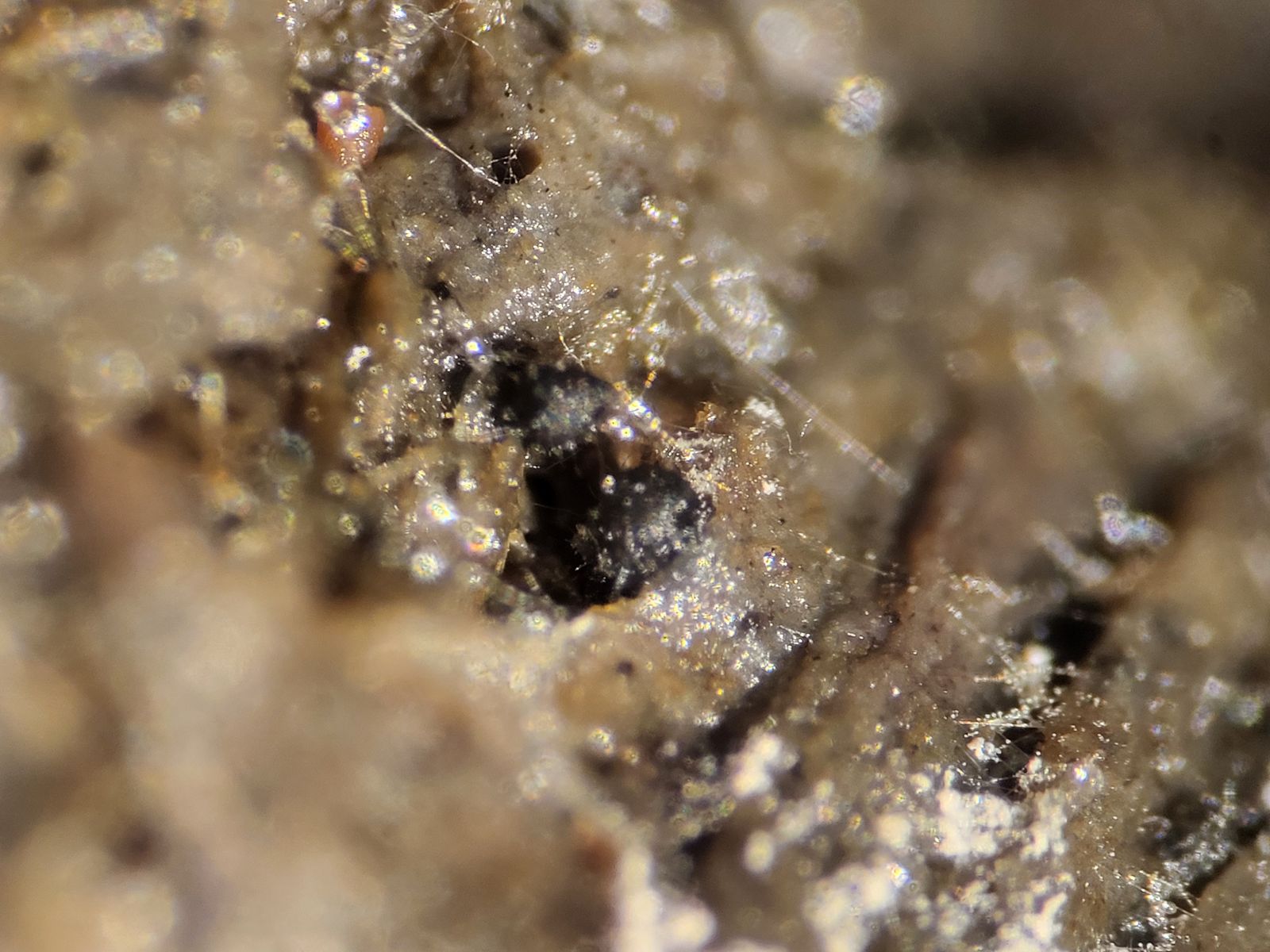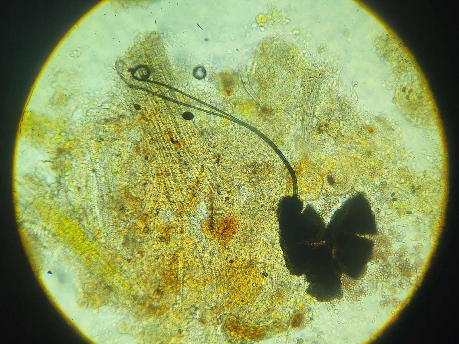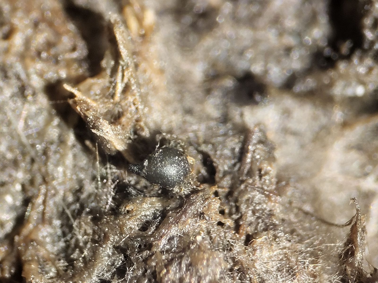Der nächste Fund dann mit einem „cf“: Kleistothecien mit kleinen Clustern aus rundlichen Sporen (Durchmesser um die 2,5 µm) passen wohl ganz gut zu Nigrosabulum globosum. Kann die Art bestätigt werden?