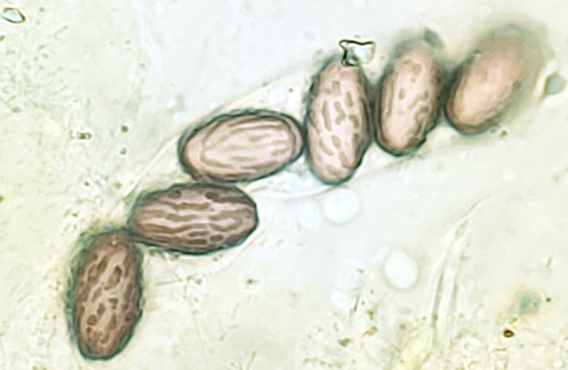 mit den Maßen, losen Sporenclustern und gelbem Paraphyseninhalt hätte ich auch keinen anderen Vorschlag. Finde die Gattung aber durchaus nicht ganz einfach und die Art habe ich selbst noch nicht gefunden.