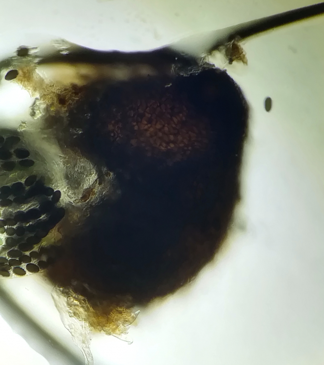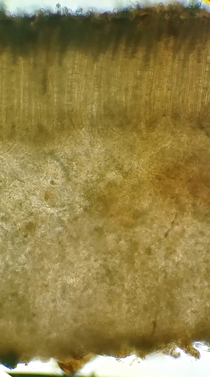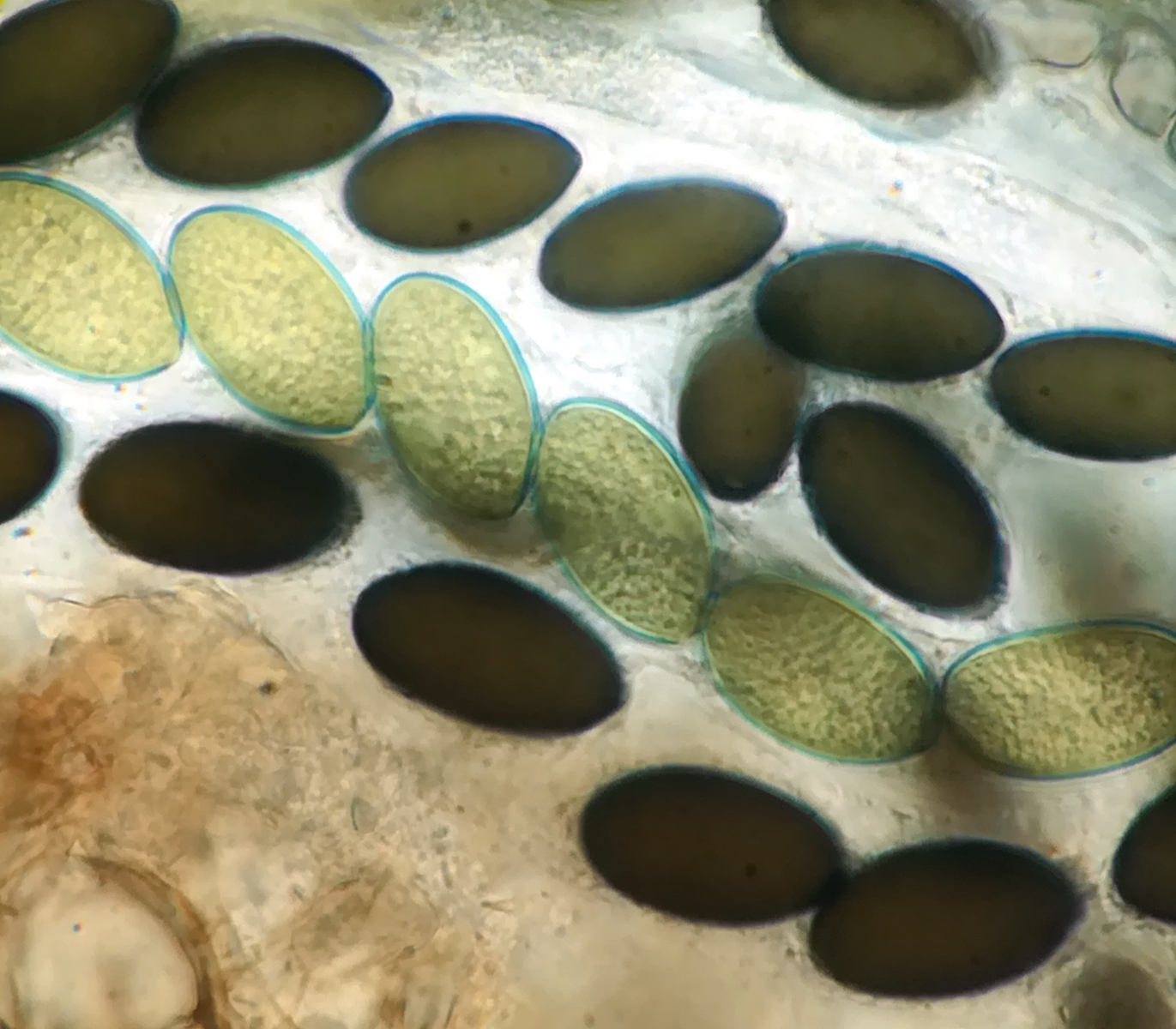 - Nein, ich Excipulum gab es kein violettes Pigment, das Bild täuscht da etwas (ist wohl meiner momentanen Abbildungstechnik geschuldet). An Pigment gab es verschiedene Brauntöne bis hin zu einem dunklen Rotbraun.