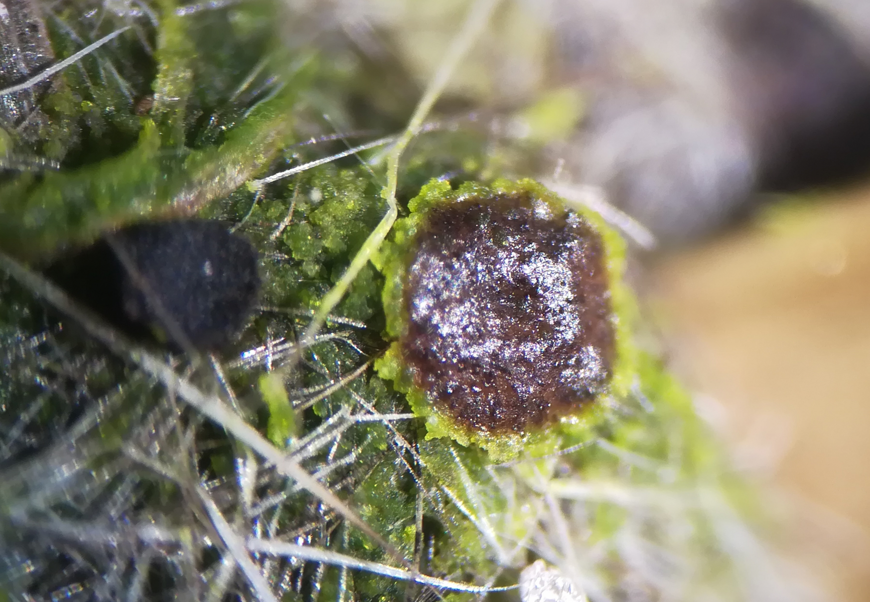 - KOH bewirkte eine leichte Entfärbung, allerdings nur ein Aufhellen der Brauntöne. Das Exsudat löste sich aber nicht ab