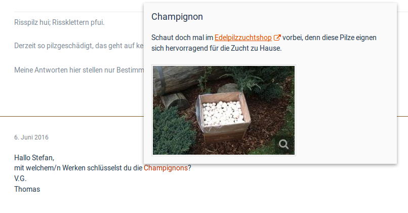 Ich hatte ja an anderer Stelle die neue Möglichkeit gelobt, Fachbegriffe und "schlaue Pilznamen" mit Erläuterungen zu versehen.