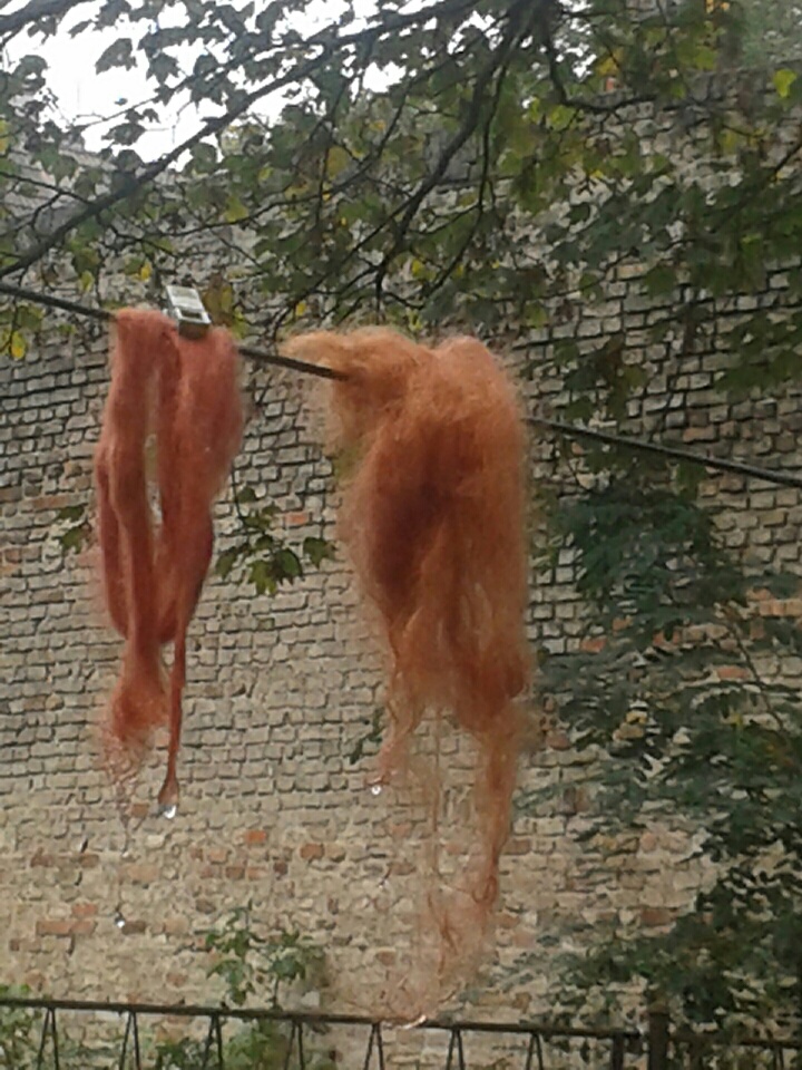 Schöne Farben, allerdings auch etwas ins Orange gehend wie Krappwurzel, v.a. auf der ungebeizten Wolle rechts. Ich hätte so gern mal was, was eher himbeerrot färbt.