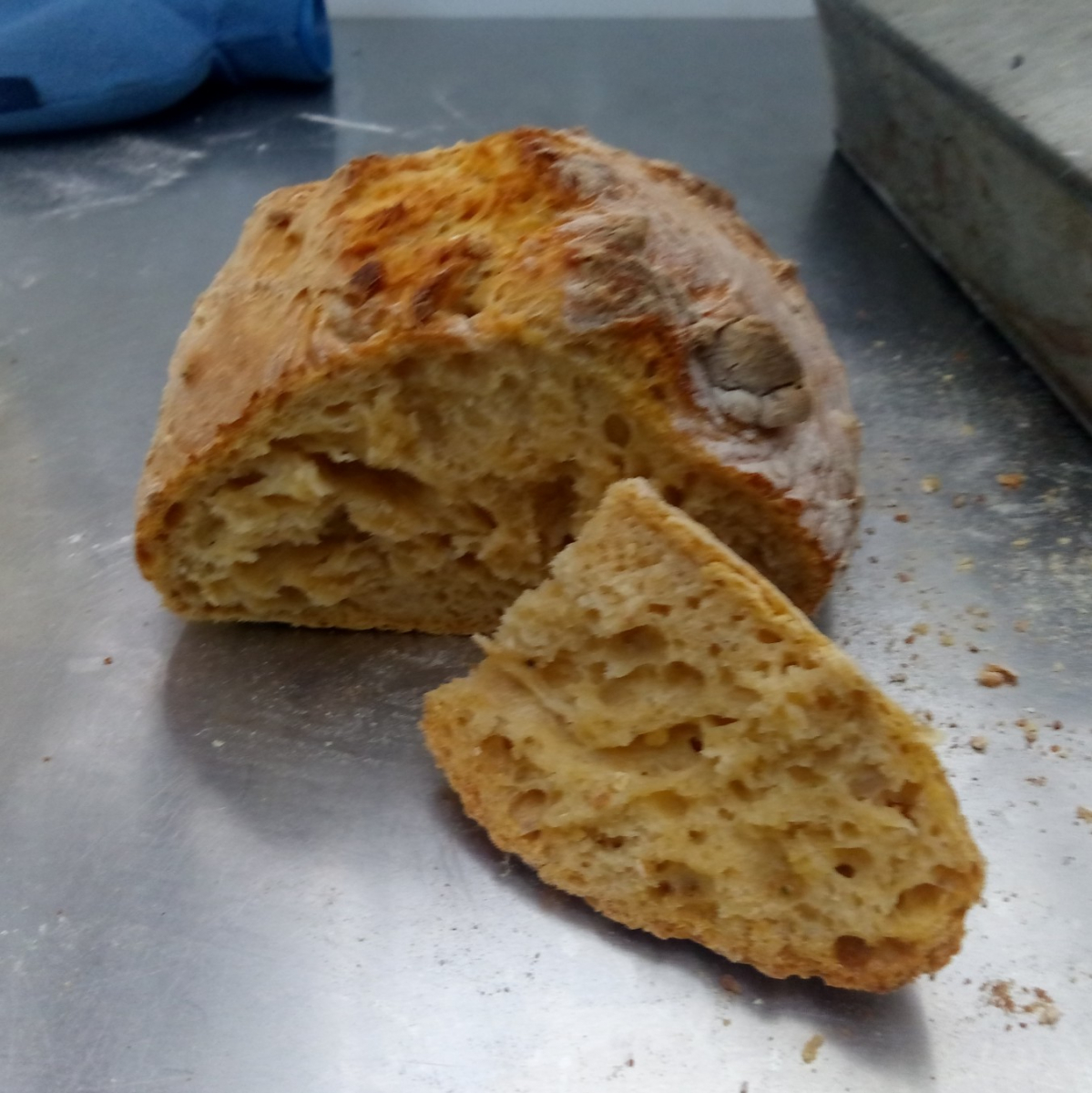 Dieses nur mit Hefe. Beim nächsten Mal vielleicht beides, sofern ich nicht vorher den Sauerteig verhungern lasse. Je mehr Löcher, desto besser.