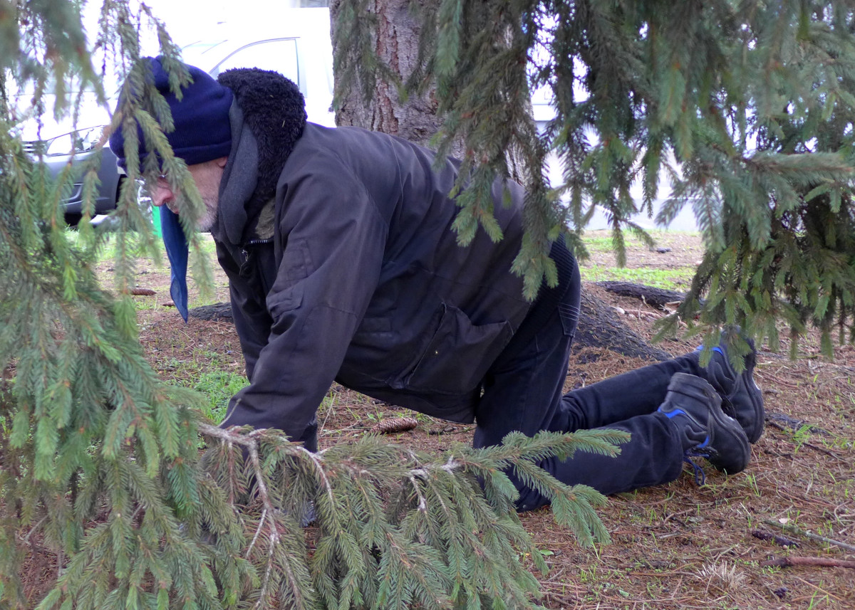 Malone in der Pose des Pilzspürhunds auf erfolgreicher Erdsternjagd.