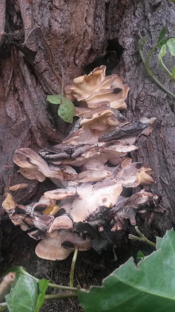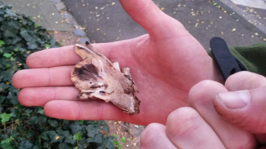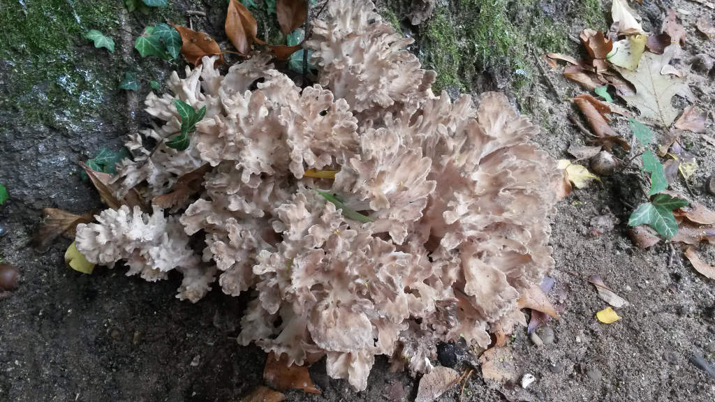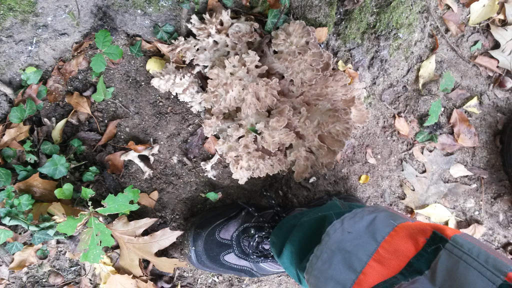 Heute (25.9.) stand ich am Stammfuß einer Roteiche und sah dort einen Pilz der mich doch sehr an