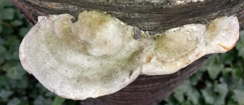 die Unterseite passt nicht zu Schillerporling und die Oberseite ist SEHR BEHAART und zudem recht hell. Trametes hirsuta (von T pubescens weis ich es nicht) kommt zumindest an Prunus hier und da mal vor.