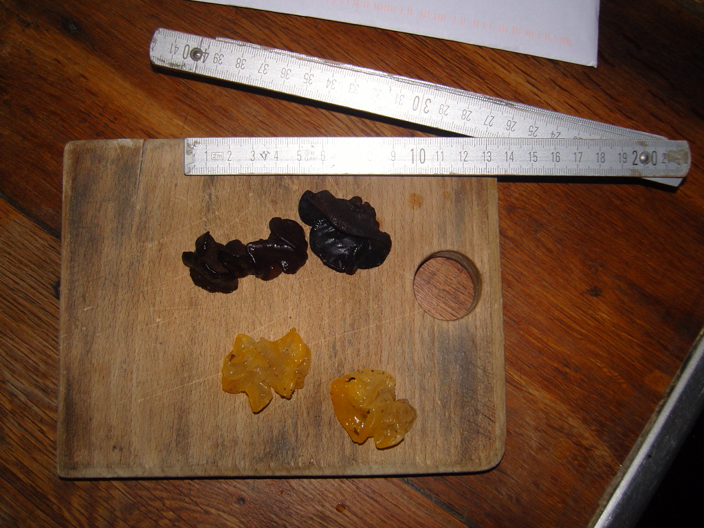Ihr seid aber schnell.....ja leider sind die Bilder nicht optimal (ich war auch nur zum Holzmachen im Wald ...ohne Kamera!) Die gelben wuchsen einfach auf einem Eichenast. und vor 2 Wochen waren da ca. 2 kg Totentrompeten...lecker....