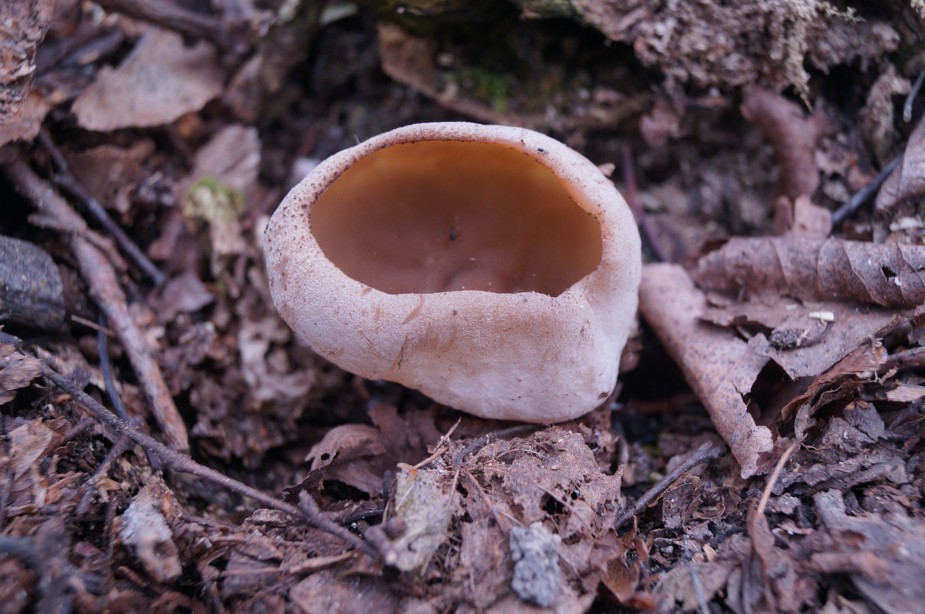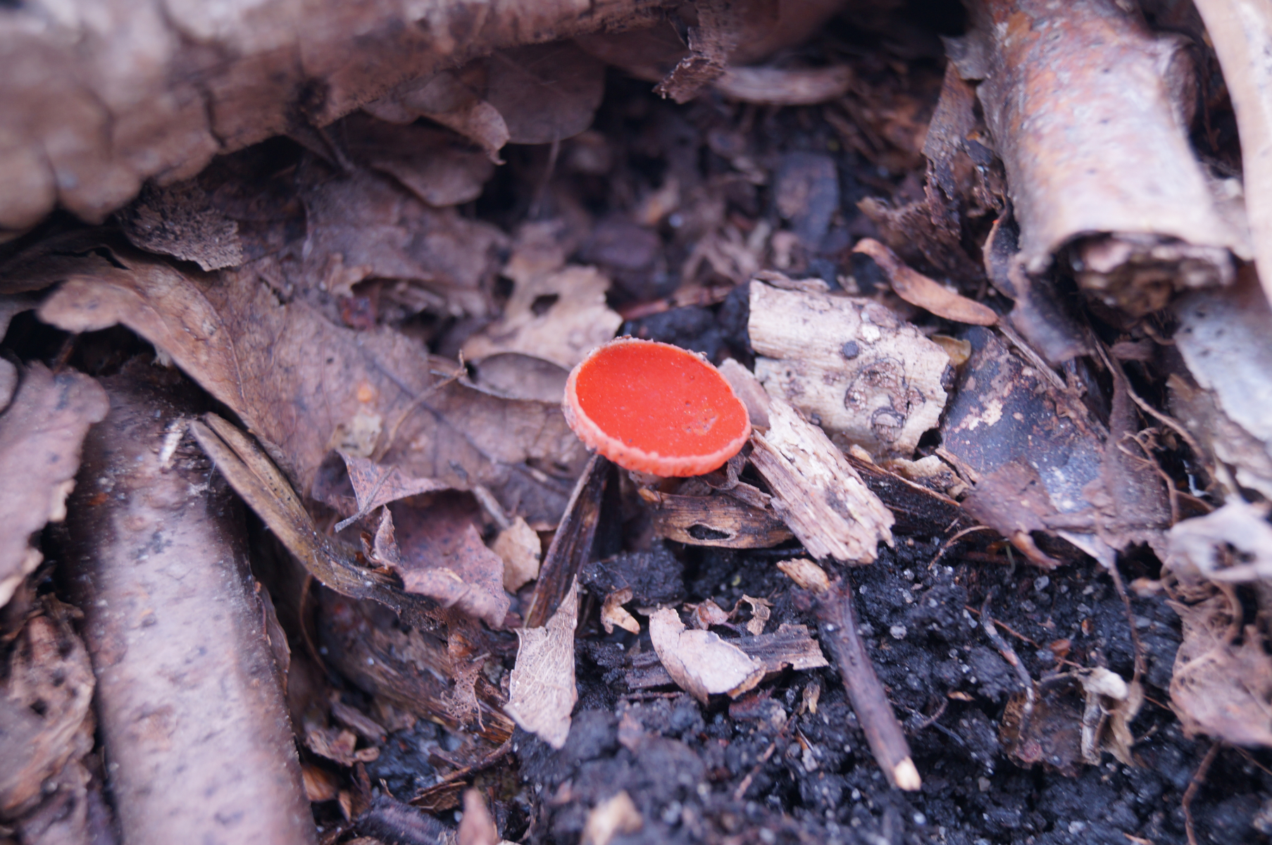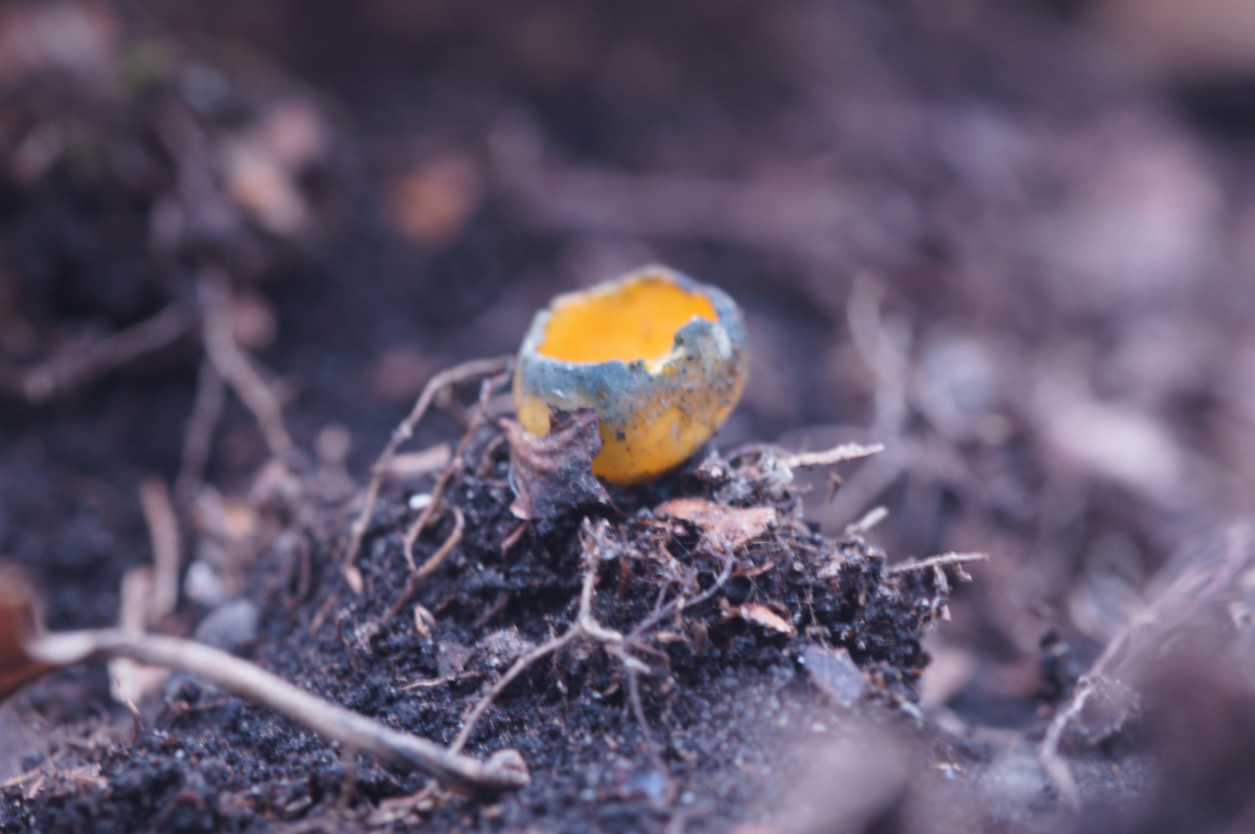 Caloscypha fulgens Durchmesser 0,5 cm.