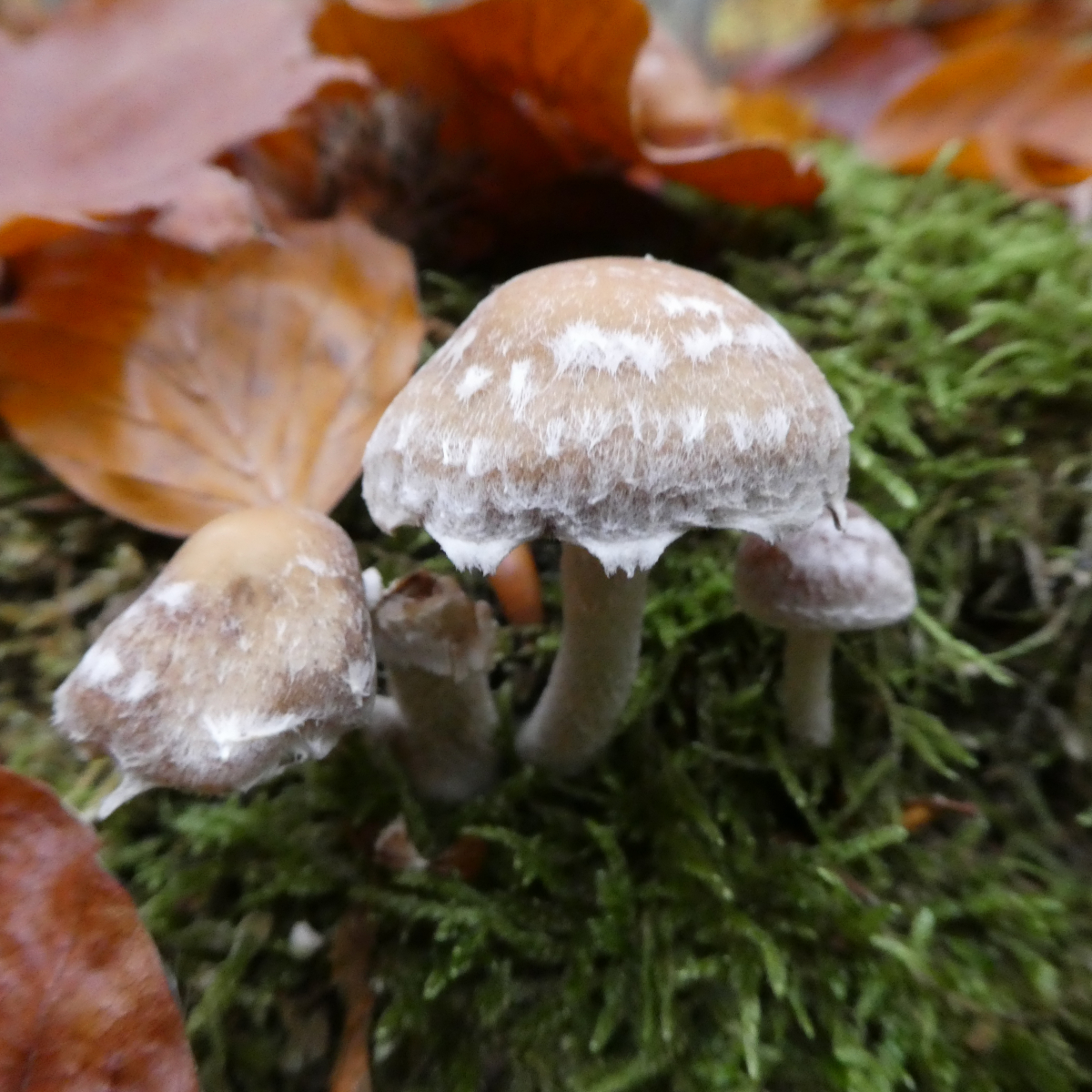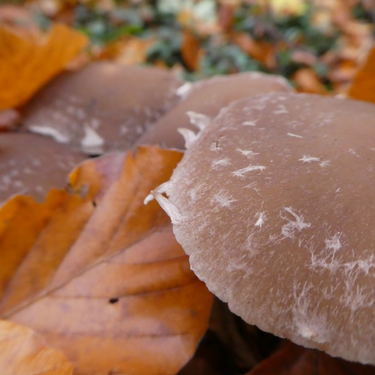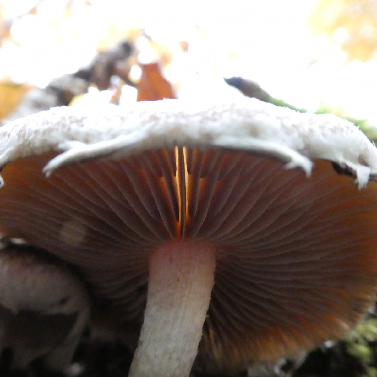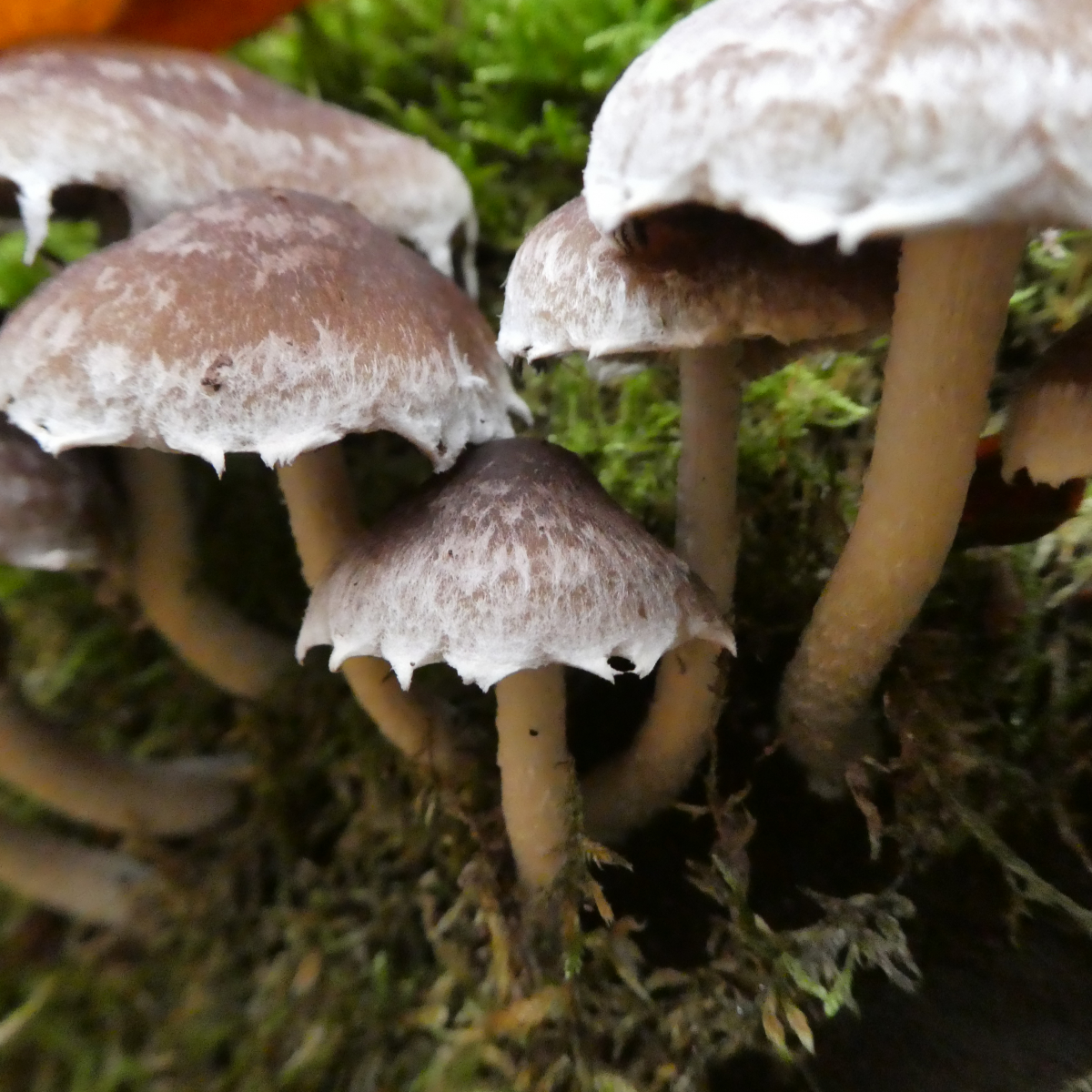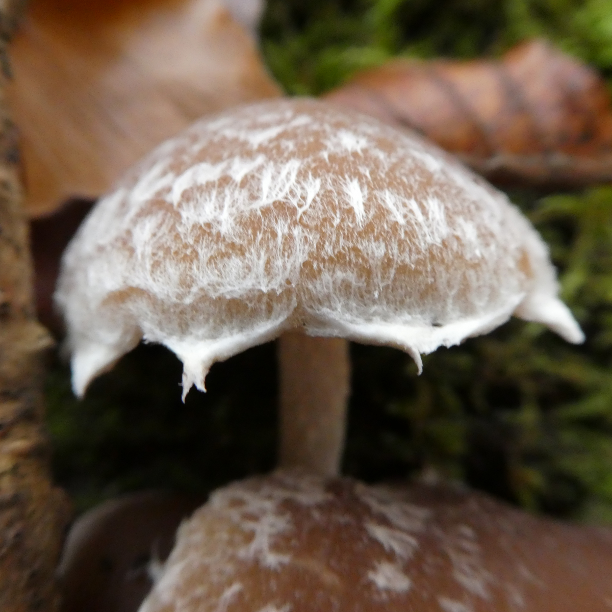 Gefunden in einem Kalklaubwald auf einem massiven Laubholzstamm. Hat irgendjemand von euch eine Idee dazu? Auffällig ist der behangene Hutrand und die Velumstruktur. Bilder stammen von Maria; meine waren durch das weiße Velum leider zu überbelichtet.Herzlichen Dank schon mal.