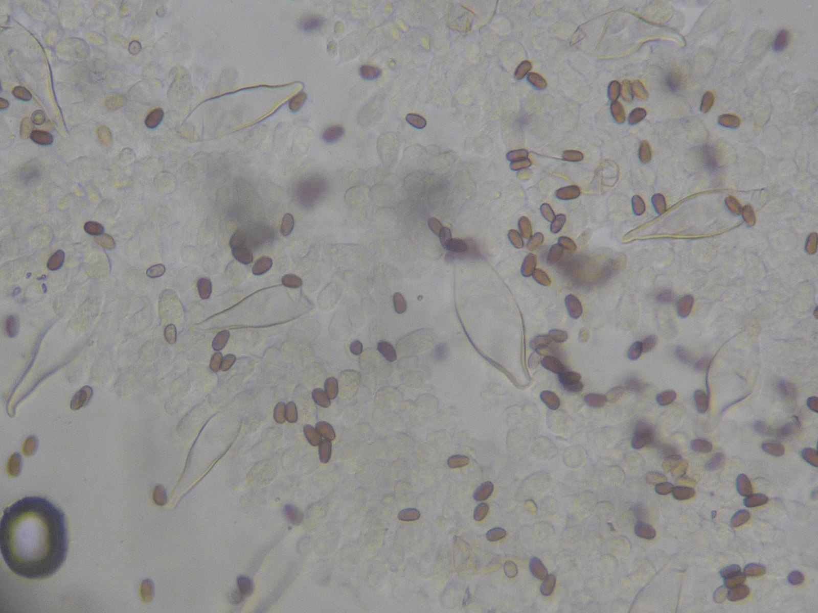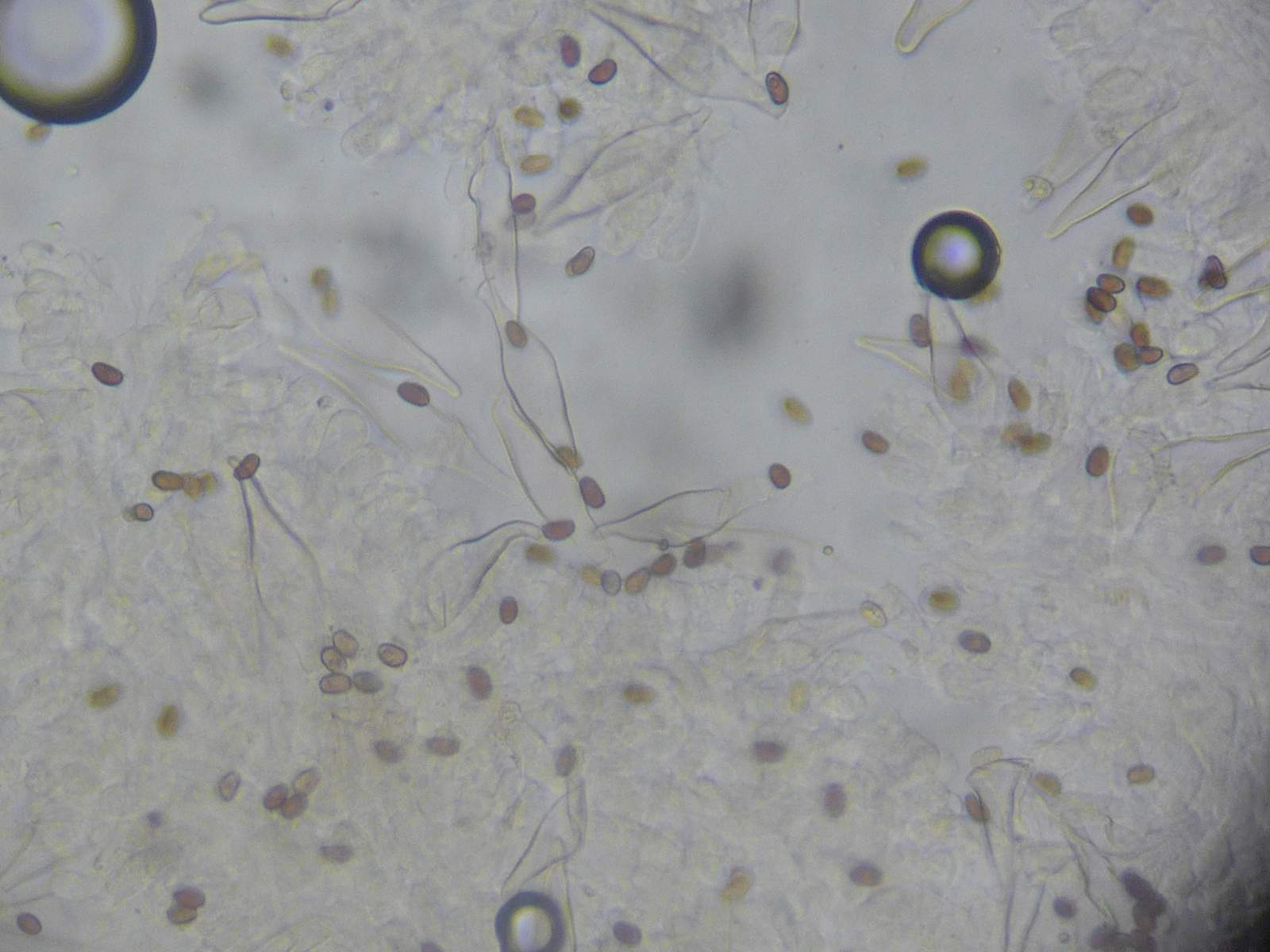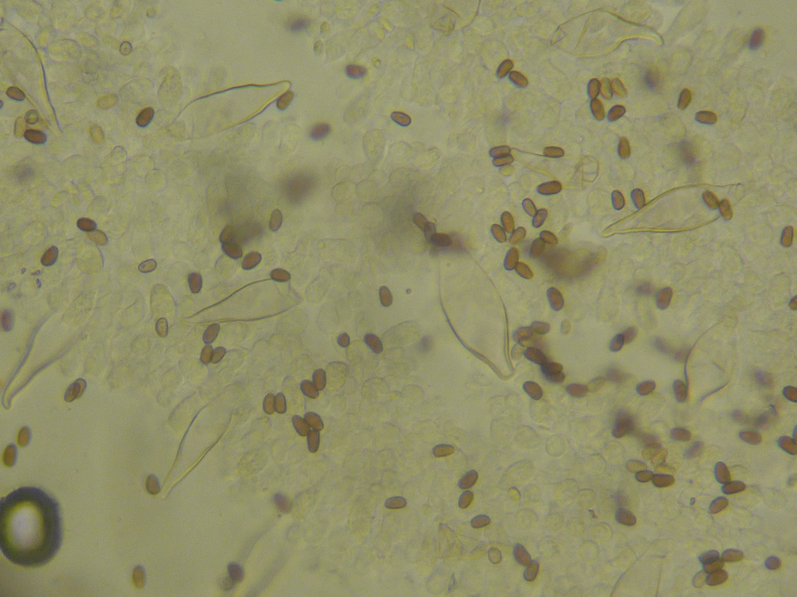 erstmal herzlichen Dank für die Hilfe. Ich habe ein paar Mikroaufnahmen der Zystiden gemacht; meiner Meinung nach passt P. spintrigeroides am besten; was mich allerdings etwas stört ist die Tatsache, dass von mir gemessenen Sporenlänge für den Fund 6,5-8,5 µm beträgt. Bilder stelle ich dann noch ein.