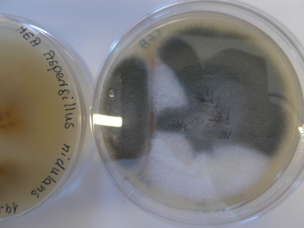 der im Innenraum allseits gefürchtete Aspergillus niger auf Platte