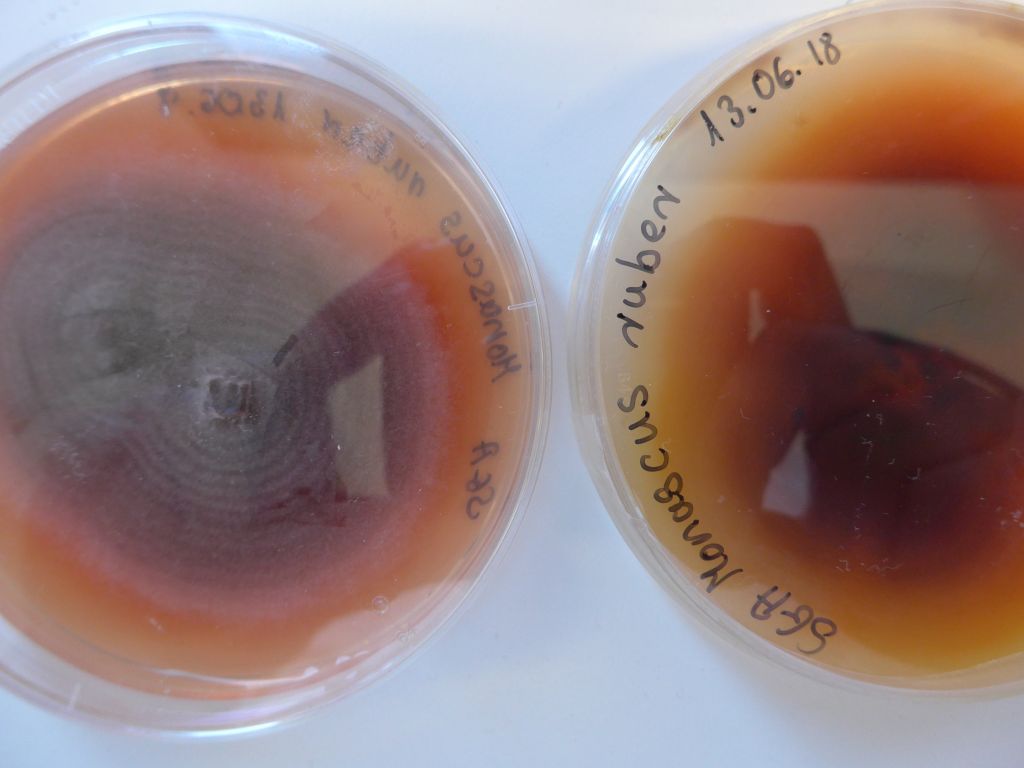Weiter gehts: Monascus ruber das ist der Pilz, der rot gefärbten asiatischen Lebensmittel rot färbt.