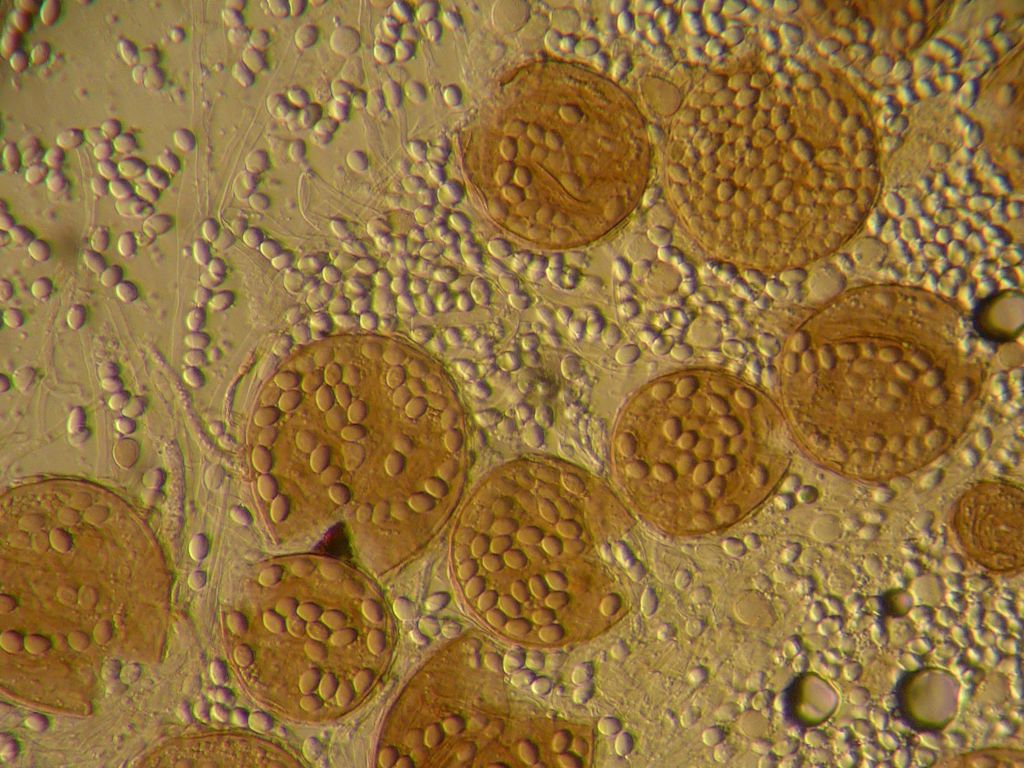 Wizigerweise ist auf dem Bild auch ein Ascus zu sehen. Diese Hefe könnte einigen von euch was sagen, denn sie wird in Afrika zur Herstellung von "Pombe", einem Bananen-Hirse-Bier verwendet. Würde ich gerne mal kosten; ebenso wie Kumyss.
