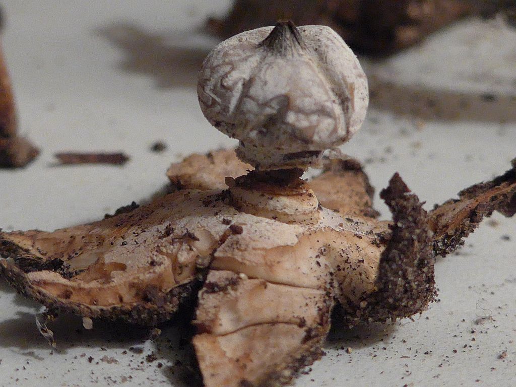 Dein PIlz ist aber schon Geastrum striatum, Stefan. Das passt alles, dieser Kragen ist ziemlich typisch und unterscheidet die Art makroskopisch sehr gut von ähnlichen Arten mit gerieftem Peristom (ohne Hof) und deutlich gestielter Endoperidie.