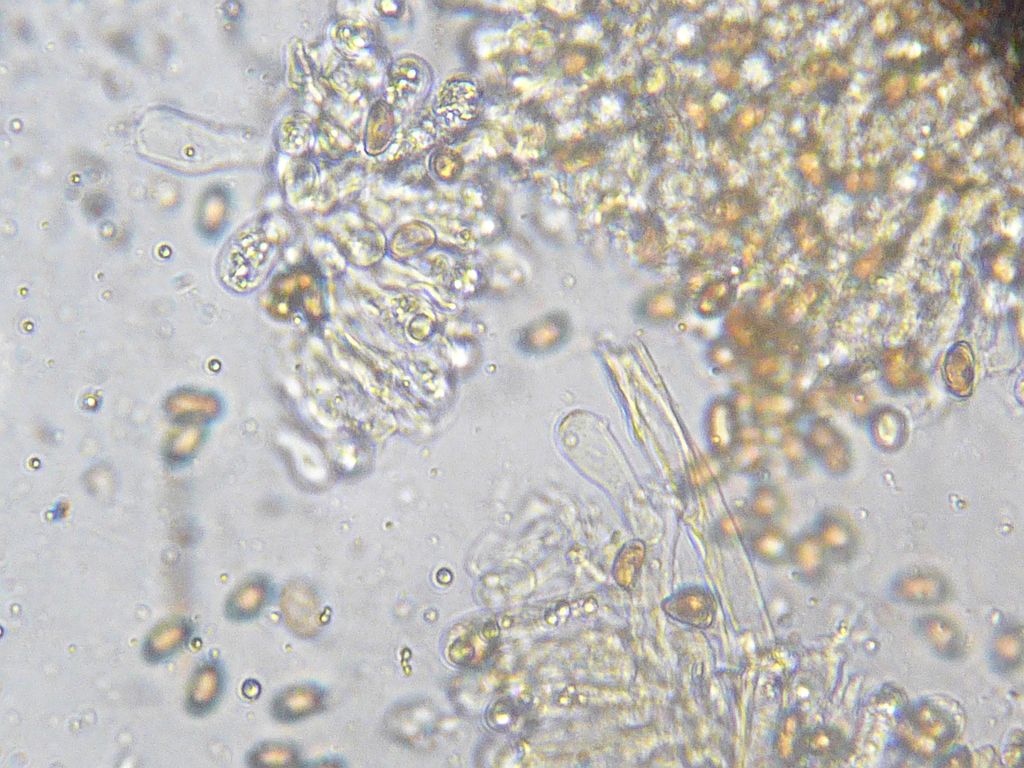 Ich habe sehr viele Basidien gesehen und dann noch zylindrische bis leicht clavate Hyphenenden, wo ich mir nicht sicher war, ob das Basidiolen oder Zystiden sind.