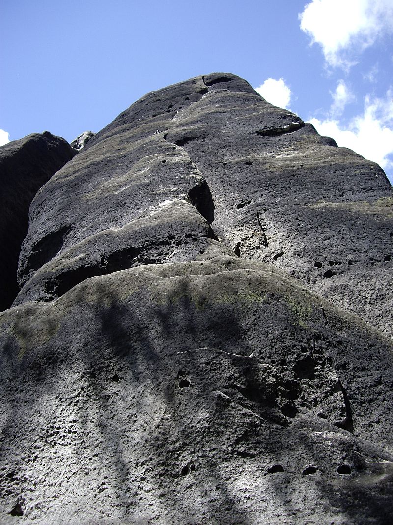war am Samstag mal wieder mit Angelas (Engelchens) Familie klettern. Nun muss ich erstmal vorausschicken, dass ich zwar sehr gern klettere; aber ich nicht wirklich gut darin bin. Es wurde ein rel. kleiner unbekannter Gipfel zuerst ausgesucht; der Kleine Gratturm. Für mich war die angenehmste Variante da hoch zu kommen; die gezeigte Route. Allerdings hat sich die als sächs. VIIb herausgestellt; also weit jenseits meiner sonstigen Kletterschwierigkeiten. Bei mir ist nach sächs. V-VI derzeit Schluss. Wenn ich mal nen verdammt guten Tag hab dann geht vielleicht auch mal eine VIIa; aber VIIb no Chance (ab VII werden die Schwierigkeitsgerade in a,b und c unterteilt; die derzeit schwierigste Route liegt derzeit bei XIIc). Gut irgendwie bin ich dann doch da hochgekommen; fragt aber bitte nicht wie. :shy: Die Route hieß übrigens "Für Dich". Ich hätte die gerne umgetauft in "Nix für mich"